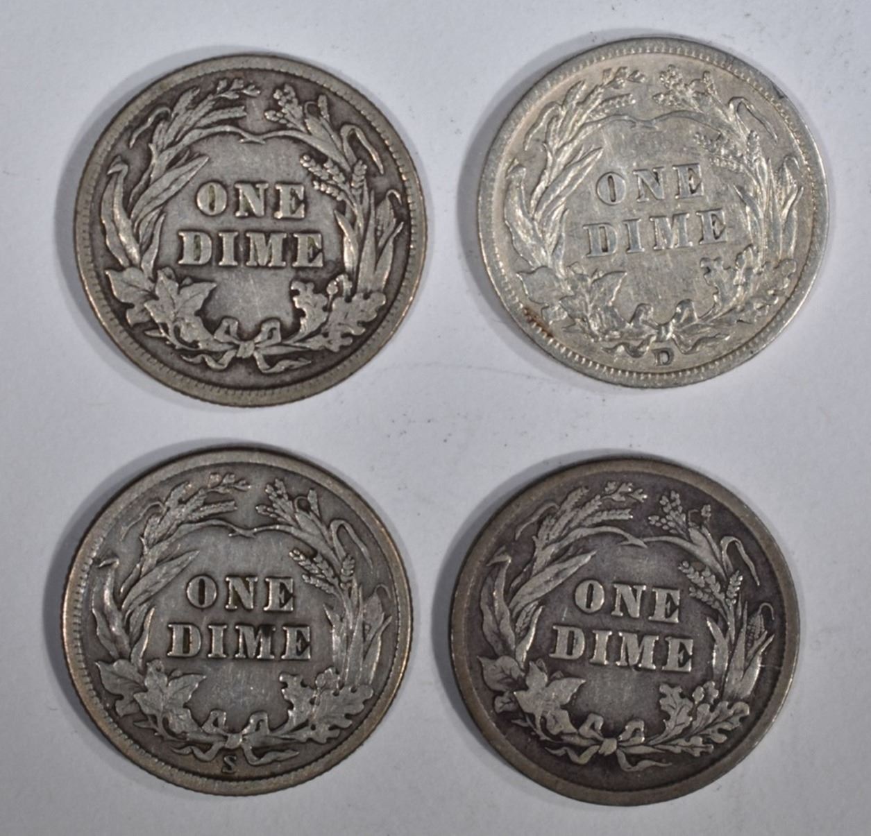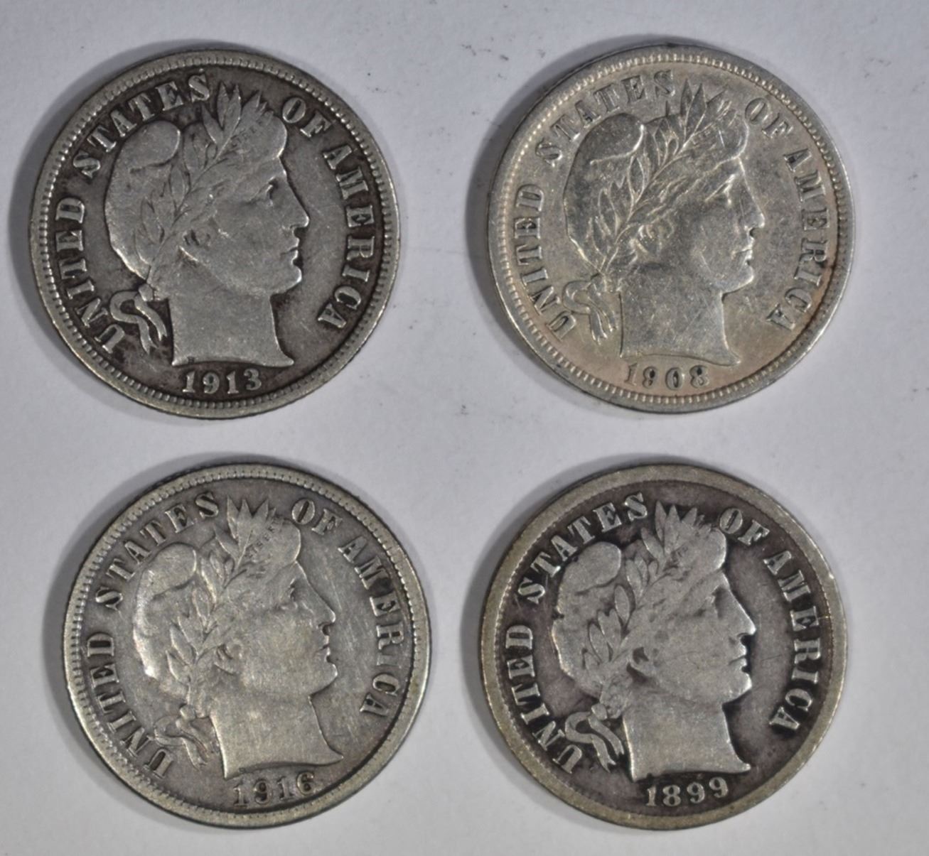 1908-D, 13 & 16-S XF/AU & 1899 F/VF BARBER DIMES,