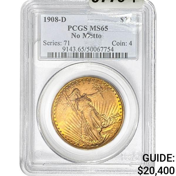 1908-D $20 Gold Double Eagle PCGS MS65 NO MOTTO