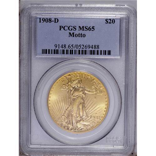 1908-D $20 Motto MS65 PCGS. Prior to the discovery of 1908-D[$20] Motto MS65 PCGS.