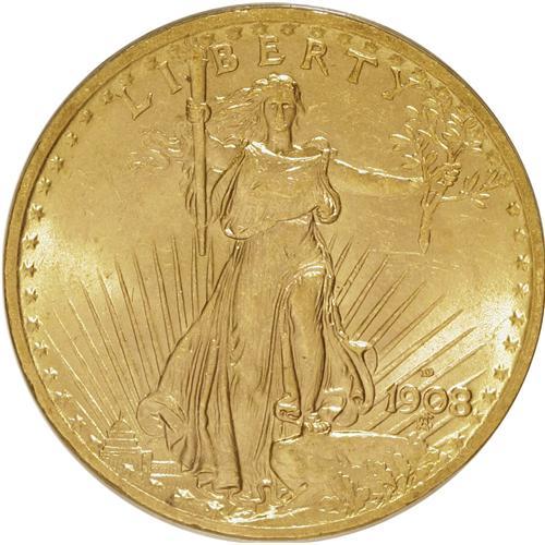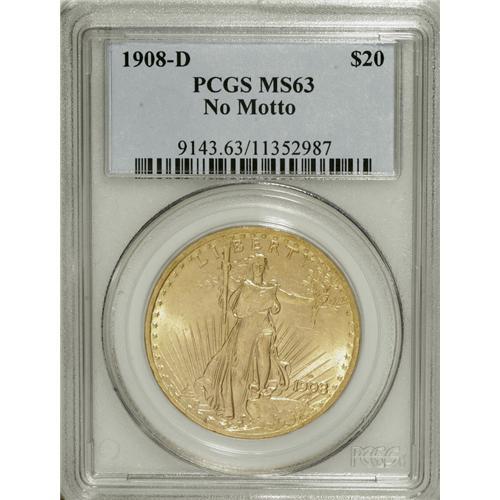 1908-D $20 No Motto MS63 PCGS. PCGS Population (945/10