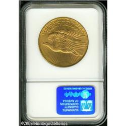 <B>1908-D $20 No Motto MS64 NGC.</B></I> Typical matte-like surfaces with pinkish-gold highlights over both obverse and reverse. Unlike the 1908-D With Motto, high grade examples are quite scarce. Lot:9475