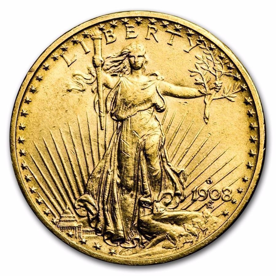 1908-D $20 Saint-Gaudens Gold Double Eagle No Motto
