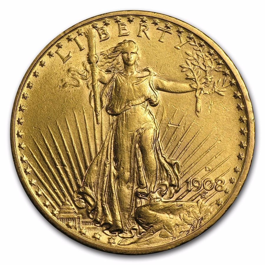 1908-D $20 St. Gaudens Gold Double Eagle w/Motto BU