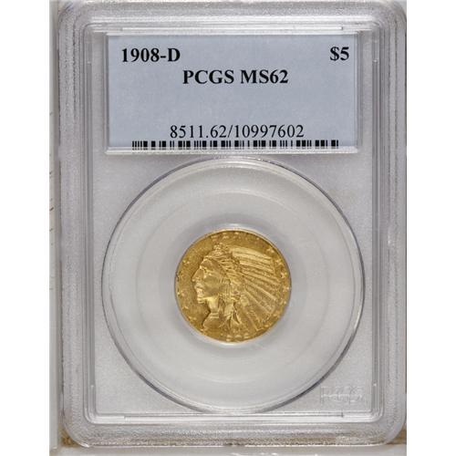 1908-D $5 MS62 PCGS. The vaguely hazy and lustrous yel