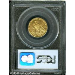 1908-D $5 MS63 PCGS. Well struck, with bright peac <B>1908-D $5 MS63 PCGS.</B></I> Well struck, with bright peach-gold patina. A few minute marks are seen on the Indian's face. <BR><BR><B>Important notice:</B> Heritage usually auctions material at the rate of 200-250 lots per hour. On some occasions eBay Live bid software or the Internet may not be able to keep up with the pace of the auction. We recommend placing a realistic absentee bid now as insurance to avoid disappointment. Occasionally the auctioneer may eliminate or reject an eBay Live bid, and the auctioneer may also reopen a lot after the close of the eBay live bidding (usually because we missed an audience bid), and may reject your bid even if it shows you as the winning bidder. By bidding via eBay Live, you agree that Heritage may award the lot to another bidder at its sole discretion under the circumstances described above or any other reasonable circumstances. Since eBay bids are not shown to us until we open the lot on the floor, we treat those bids just like floor bids. In most cases the floor responds before the eBay bid is presented to us, due to Internet lag time, so for consistency we have made it a policy that floor bids are always considered first over tie eBay live bids. Also please note that all Heritage lots purchased through eBay Live carry a 20% Buyer's Premium. Please make sure you read the Terms and Conditions before you bid. This lot is being auctioned in conjunction with a live floor auction by Heritage Galleries & Auctioneers. All final auction and invoice information will be supplied by Heritage Galleries & Auctioneers, and all other information should be considered preliminary. Lot:6694