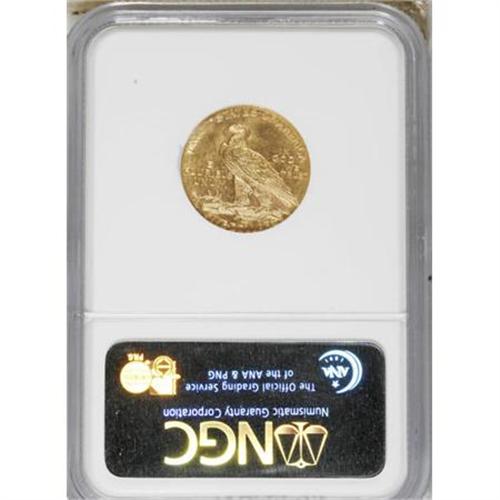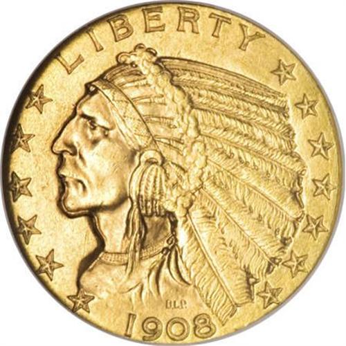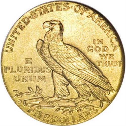 <B>1908-D $5 MS64 NGC.</B></I> Boldly detailed and highly lustrous, this lovely near-Gem has brilliant yellow-gold surfaces with few marks of any sort. First year of issue for the Indian Head design, and only the third year of operation at the Denver Mint. In MS64, the 1908-D is not particularly rare, but finding a nice one presents a challenge as only four finer pieces have been NGC certified.<BR><BR><B>Coin Engraver:</B> Bela Lyon Pratt<BR><BR><b>Shipping:</b> Coins & Currency (<a target="_blank" href="http://www.heritageauctions.com/common/shipping.php">view shipping information</a>)