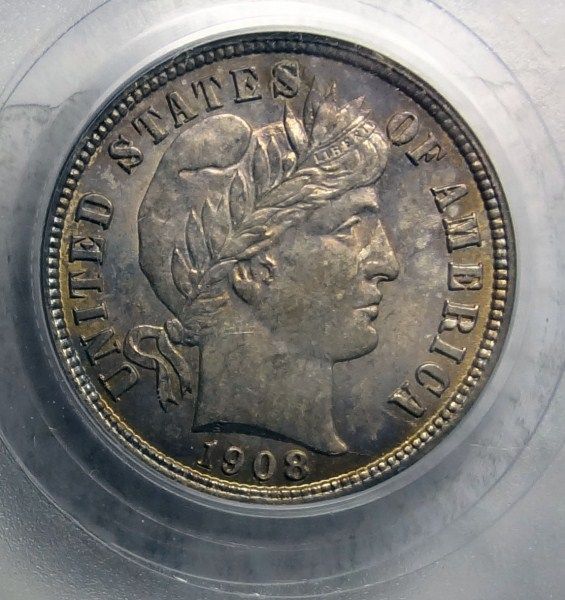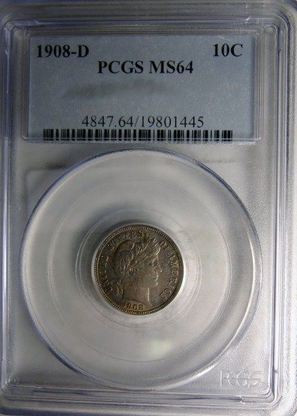 1908-D BARBER DIME PCGS MS64, CHERRY! RARE!