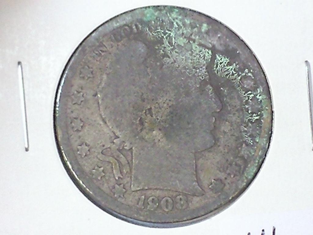 1908-D BARBER HALF DOLLAR (GREEN VERDIGRIS)