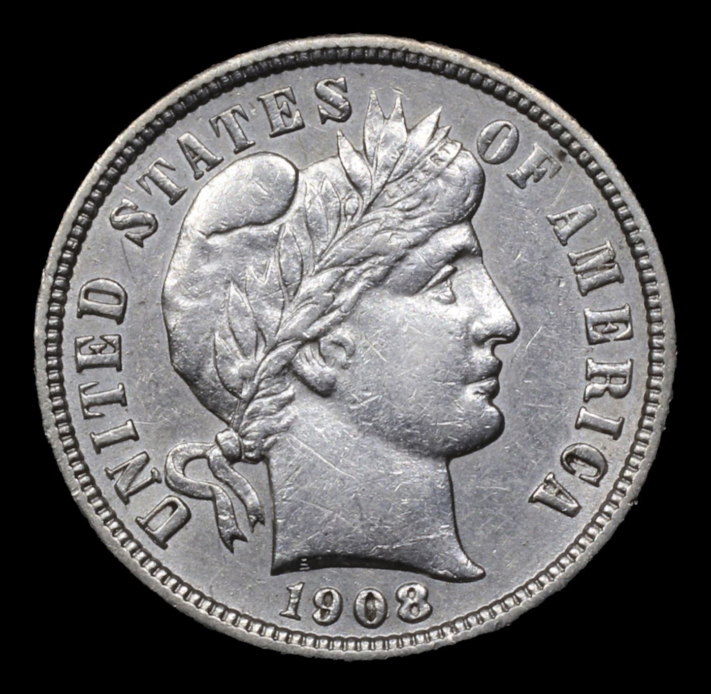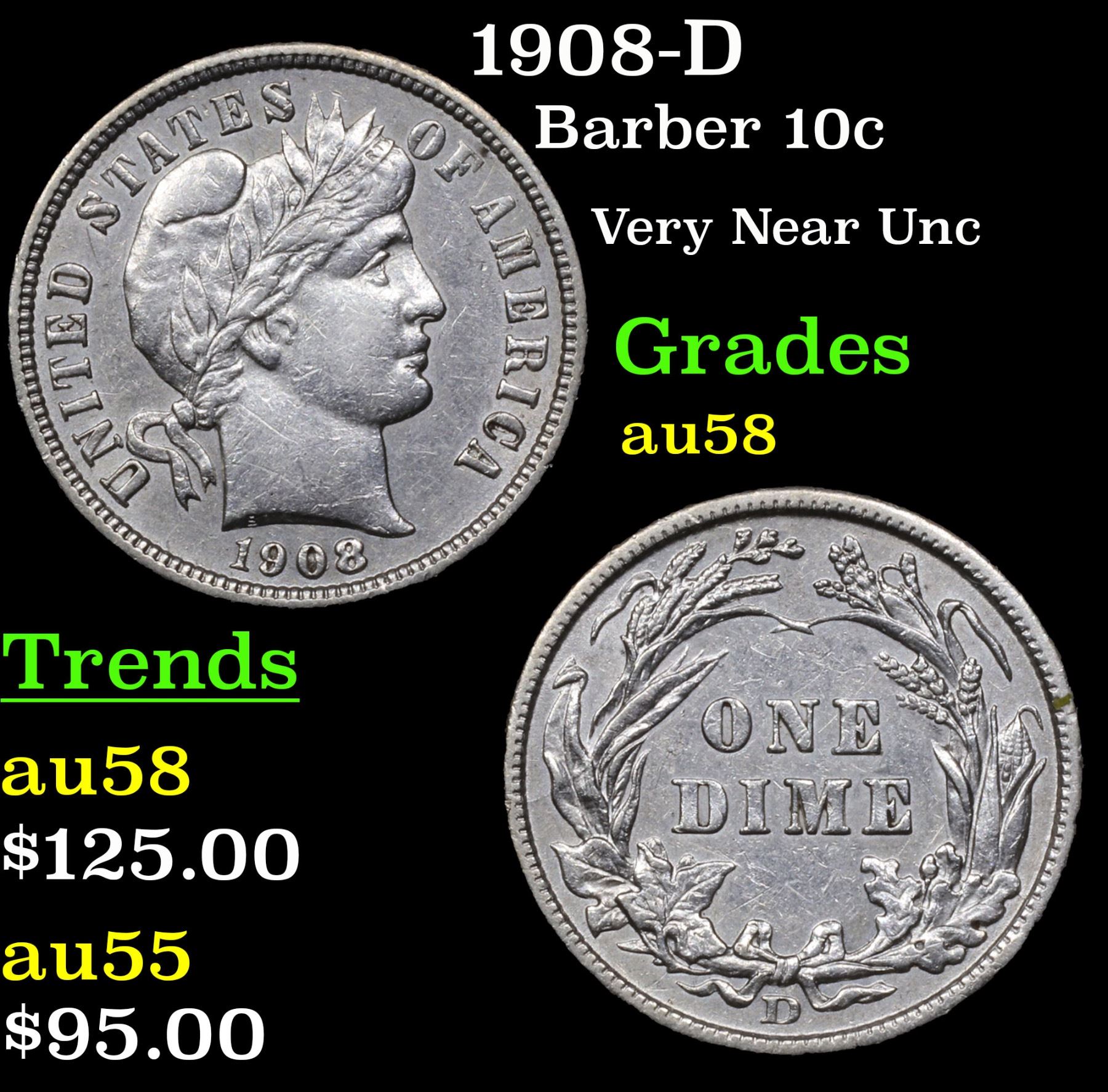 1908-D Barber Dime 10c Grades Choice AU/BU Slider.