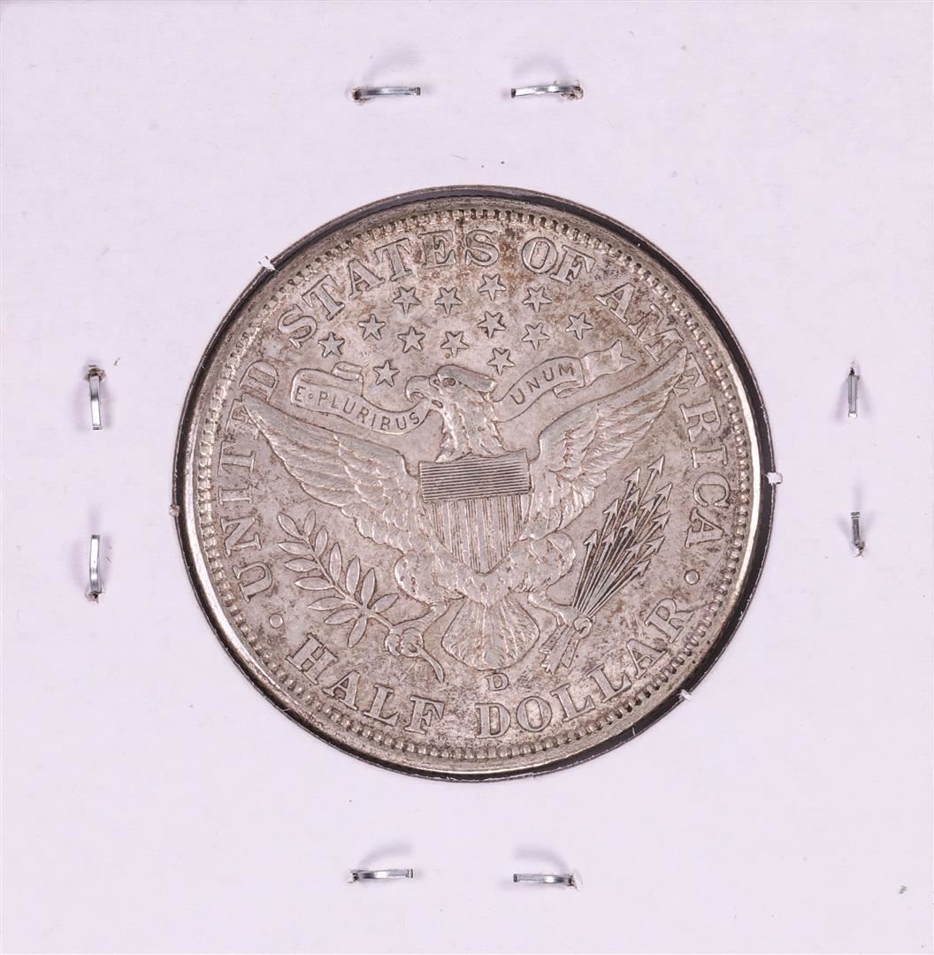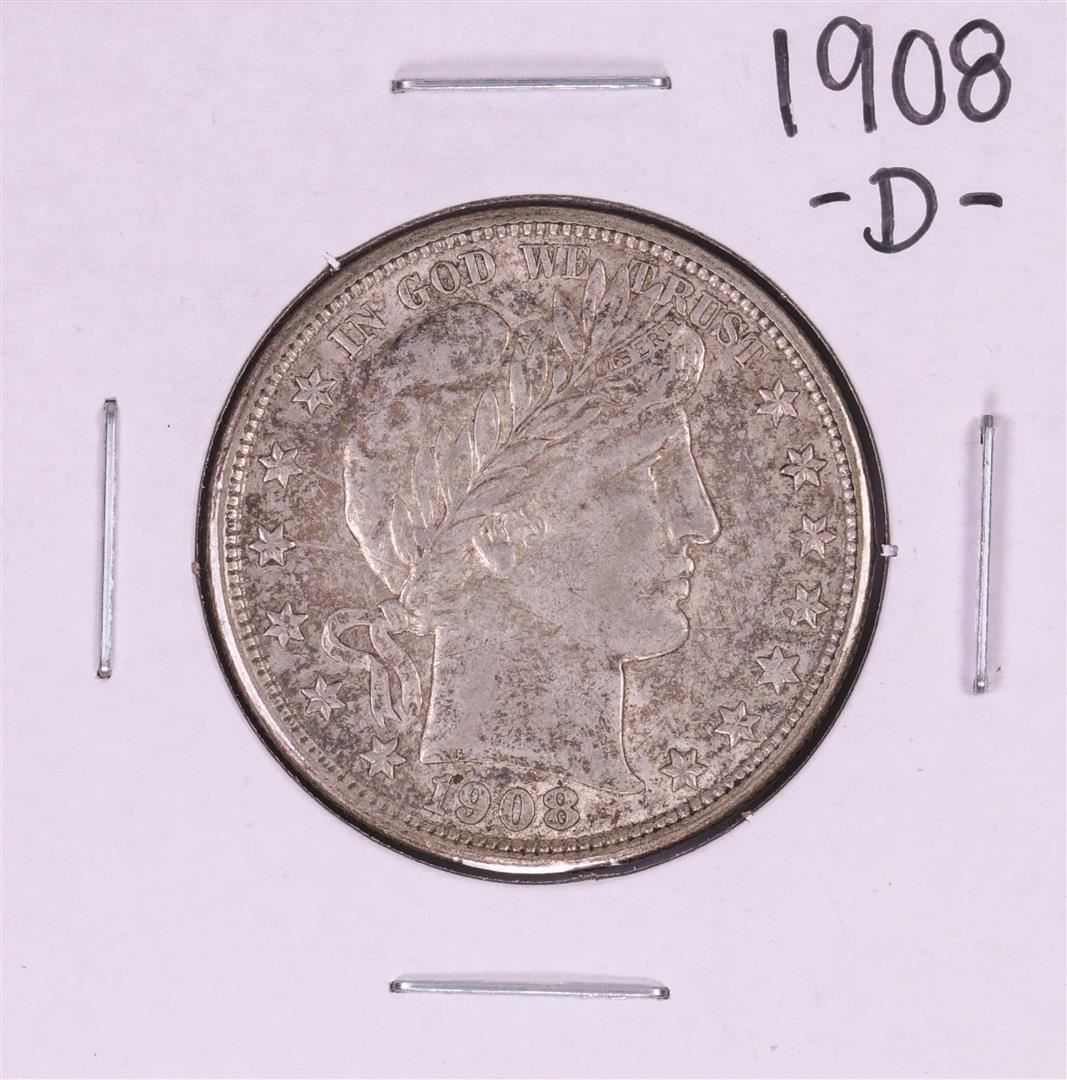 One 1908-D Barber Half Dollar Coin.