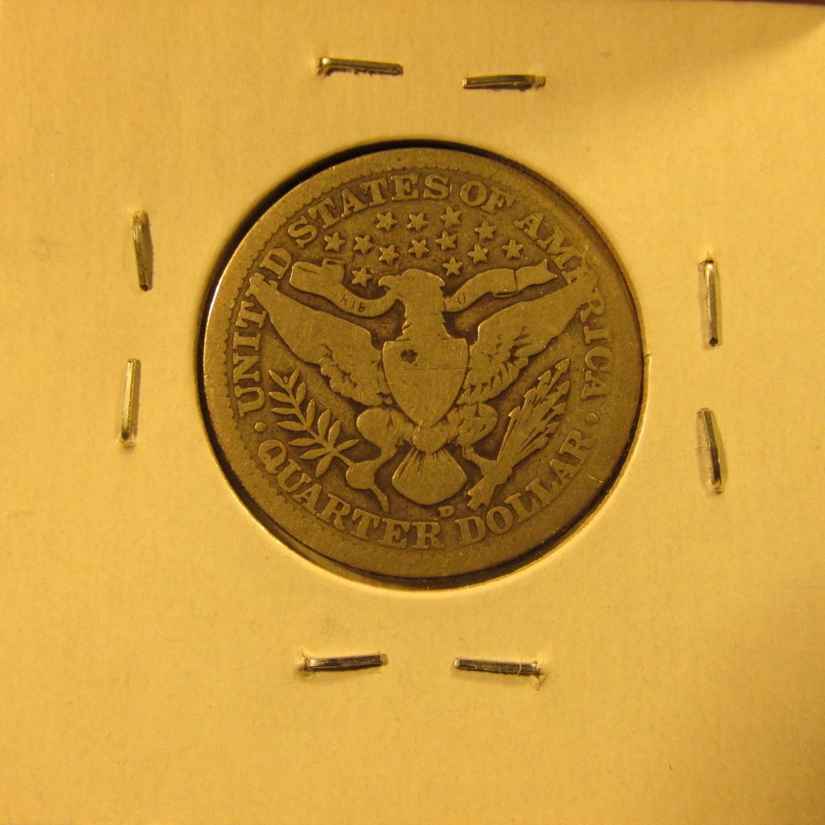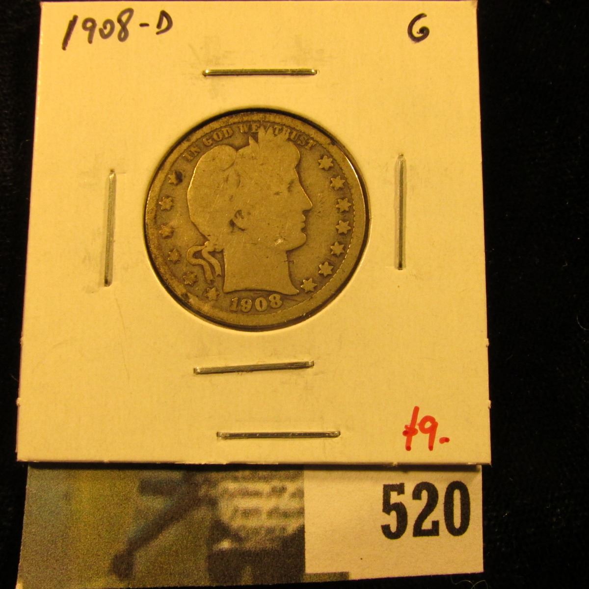 1908-D Barber Quarter, G, value $9