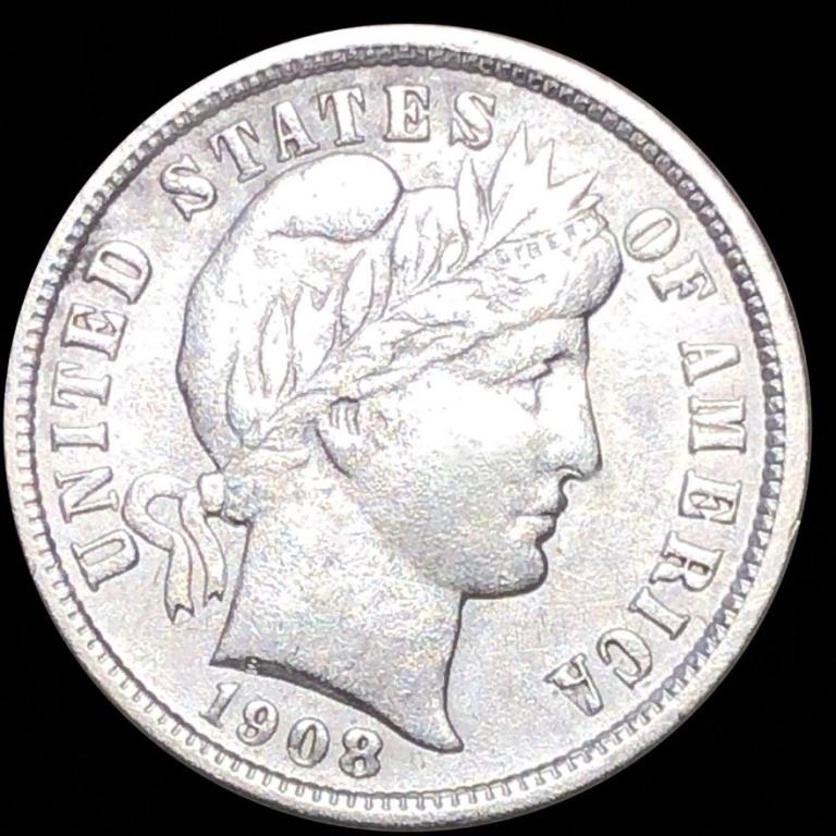 1908-D Barber Silver Dime ABOUT UNCIRCULATED