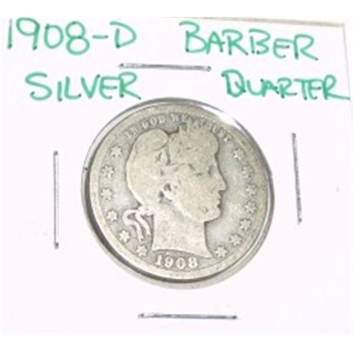 1908-D Barber Silver Quarter Dollar *PLEASE LOOK AT PICTURE TO DETERMINE GRADE - COIN OUT OF SAFE DEPOSIT BOX & NOT GRADED*!! ***Coin, Currency & All Items Listed in this auction - Grades, Conditions and Values are not Safe Deposit Coins LLC Responsibilty. Grades, Condition and Values are determined by Consigner(s) & Buyers ONLY***