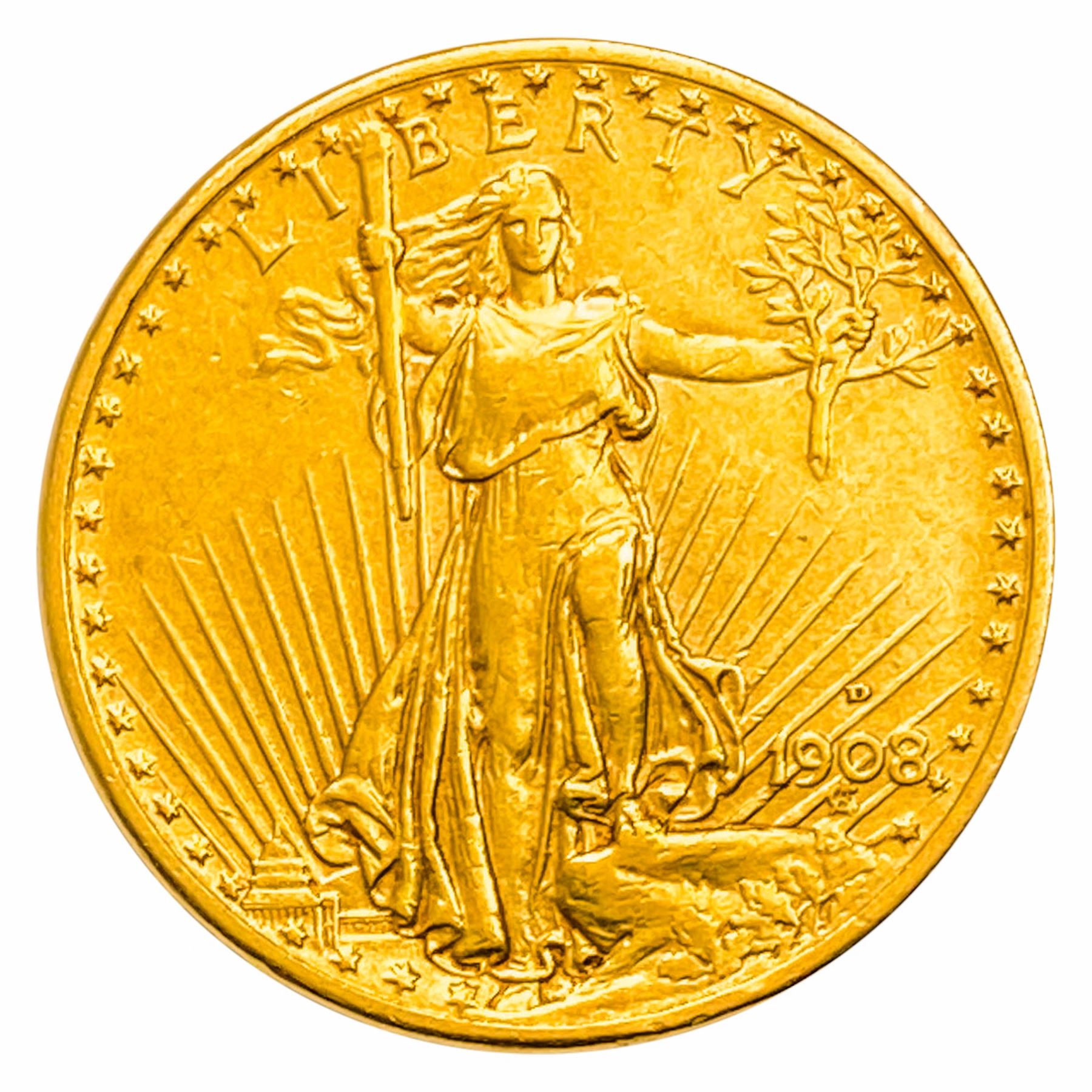 1908-D Motto $20 Gold Double Eagle CLOSELY UNCIRCULATED