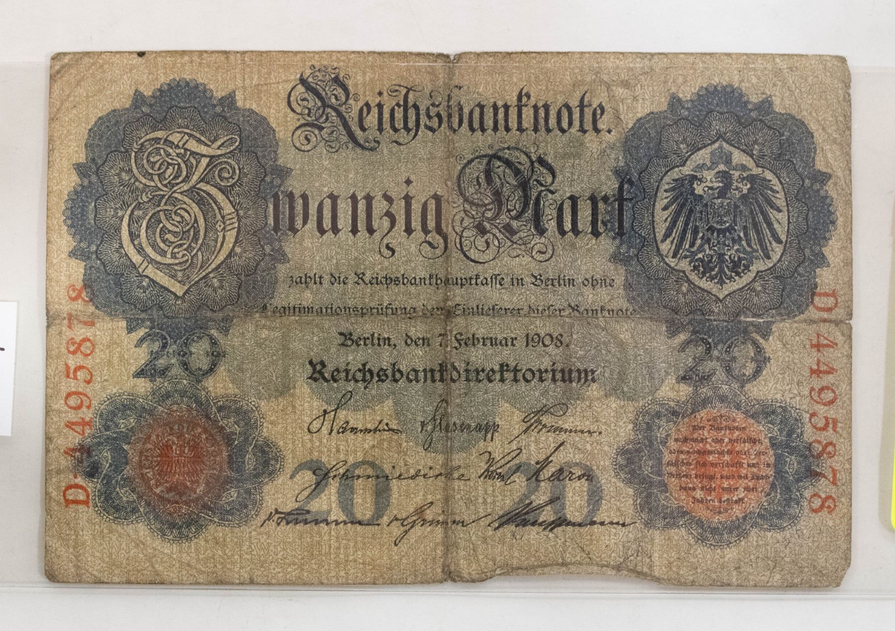1908 GERMAN EMPIRE 20 MARK BANKNOTE