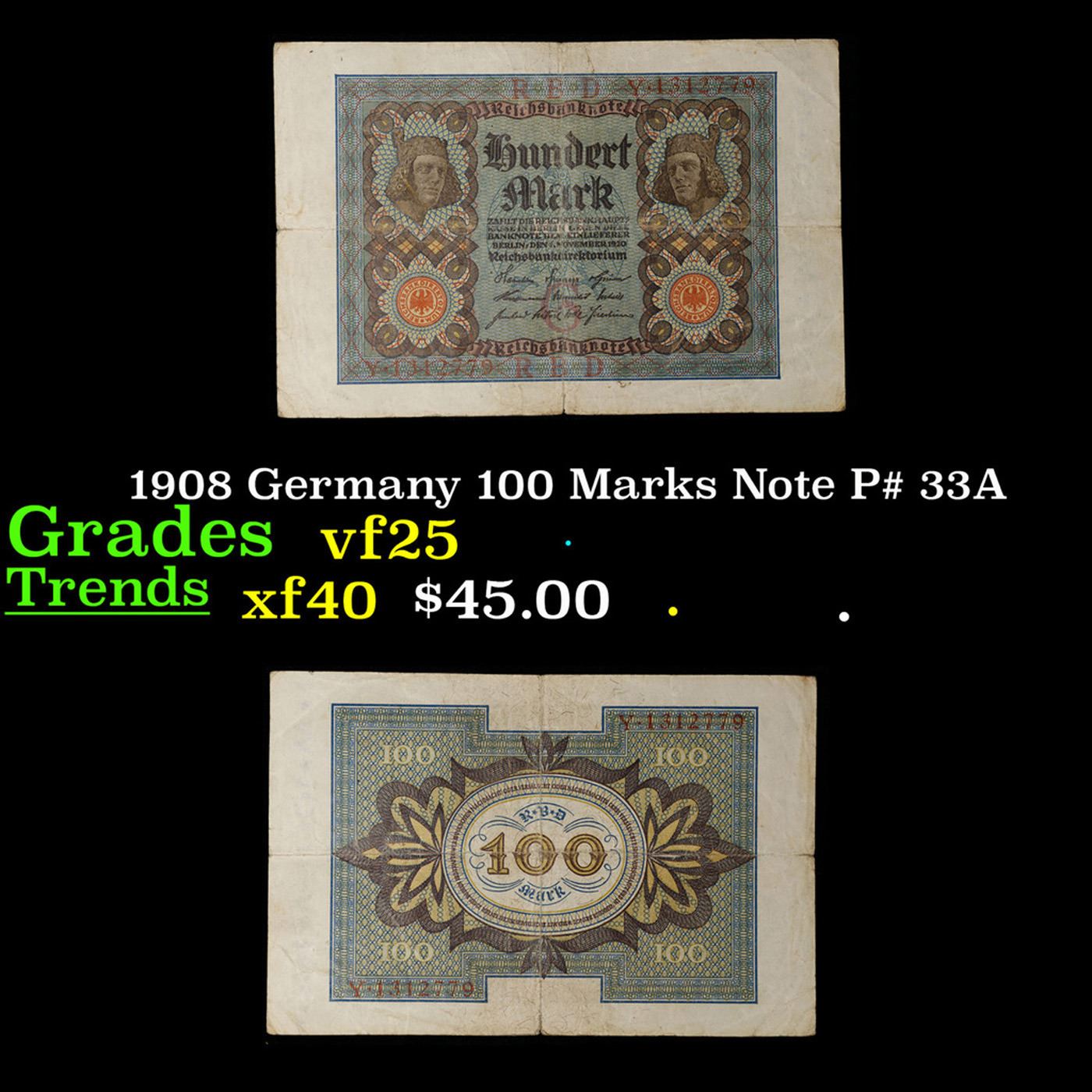 1908 Germany 100 Marks Note P# 33A Grades vf+.