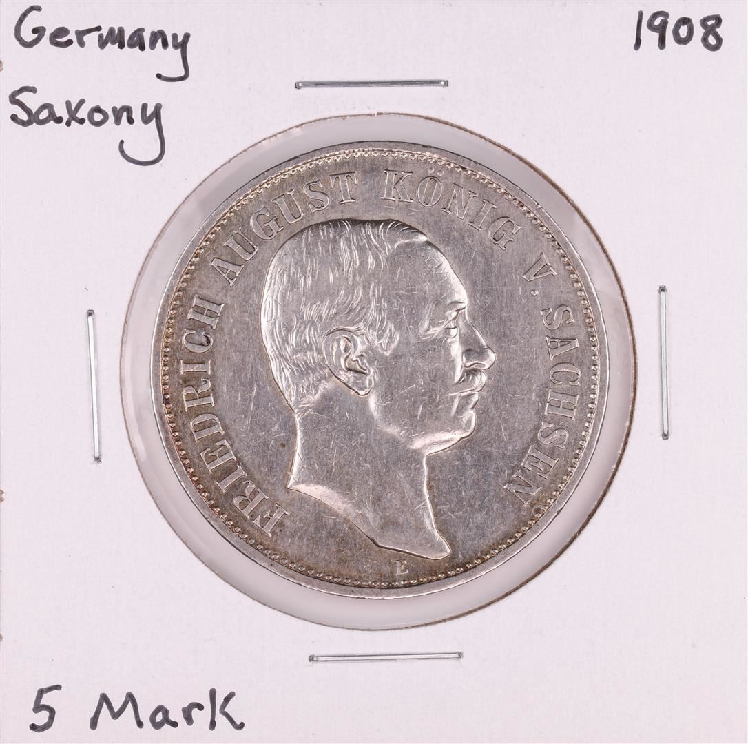 One 1908 Germany Saxony 5 Mark Silver Coin.