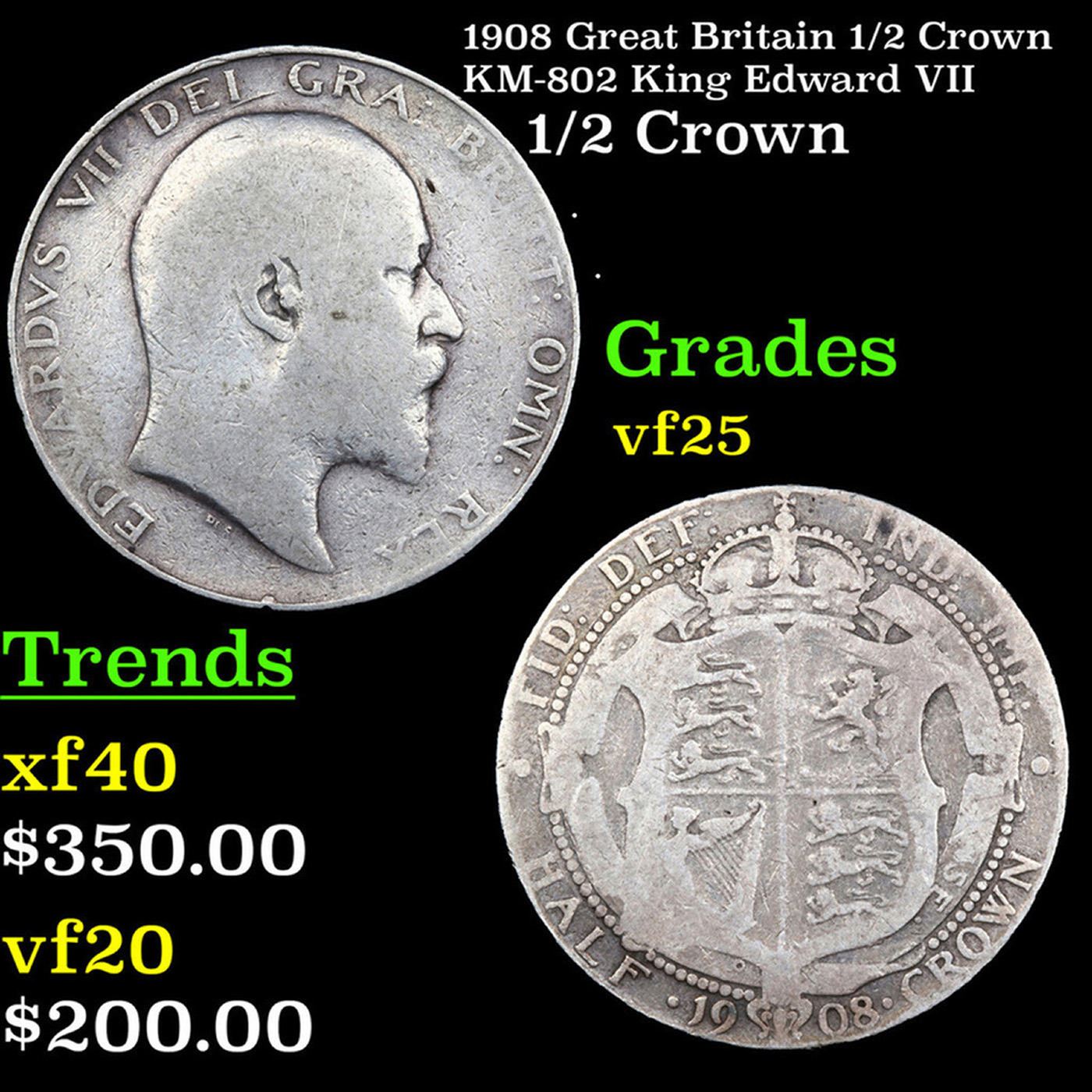 1908 Great Britain 1/2 Crown KM-802 King Edward VII Grades vf+. A Corey's Pick