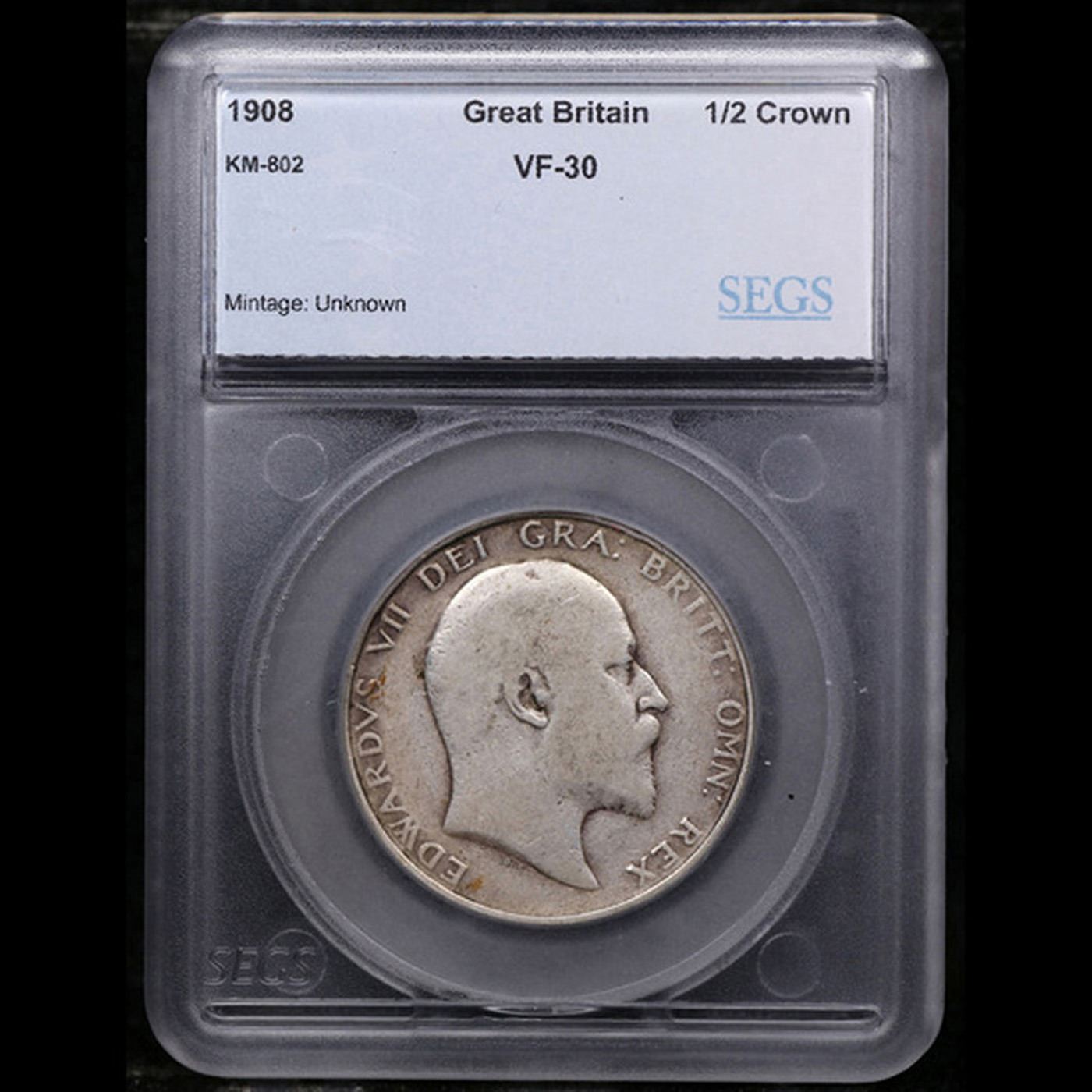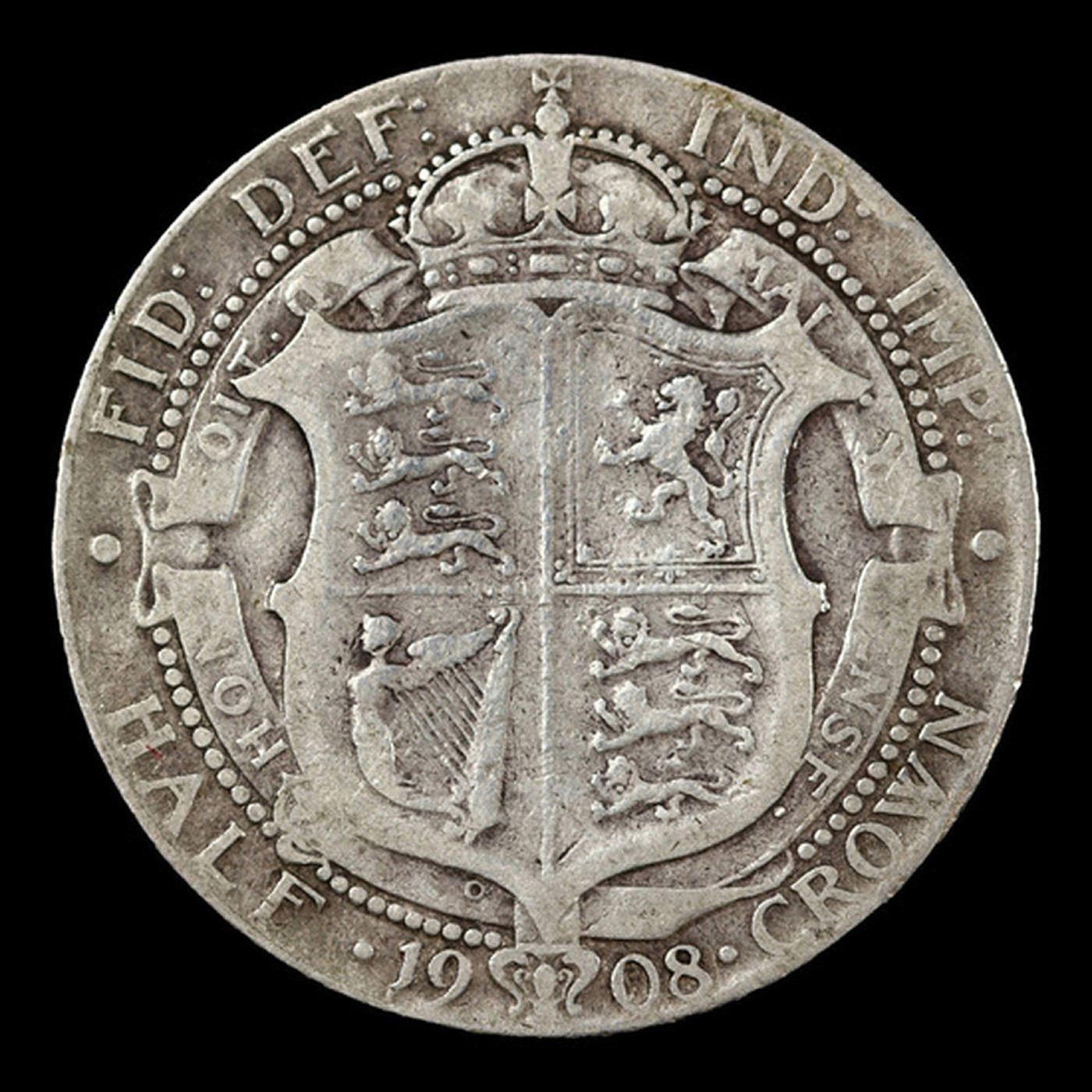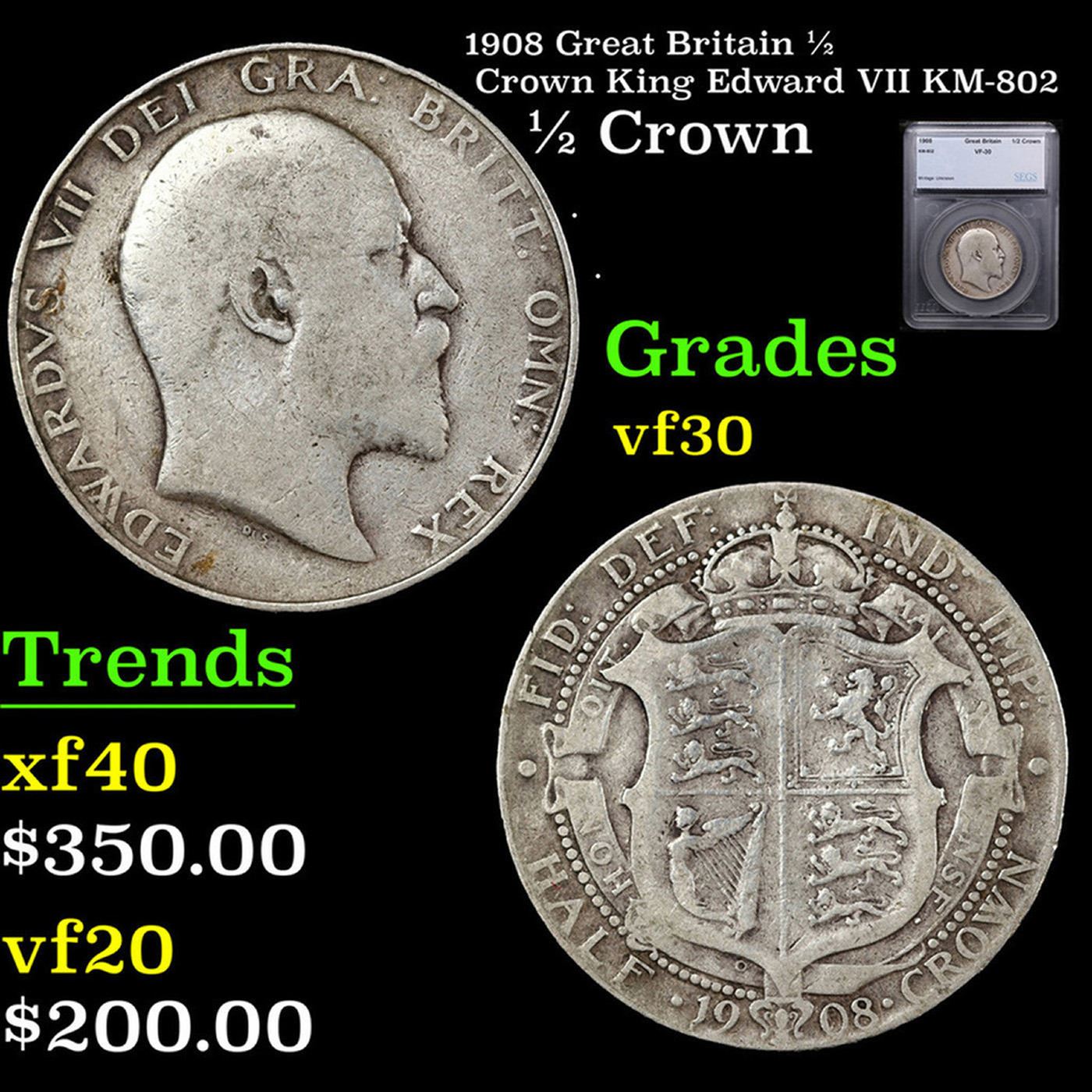 1908 Great Britain 1/2 Crown King Edward VII KM-802 Graded vf30 By SEGS.