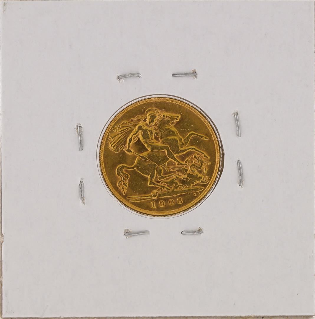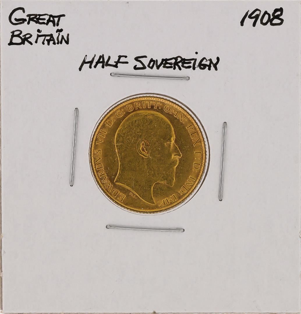 One 1908 Great Britain Half Sovereign Gold Coin.