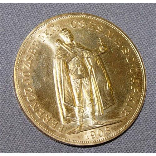 1908 Hungarian 100 KORONA Gold Coin Piece