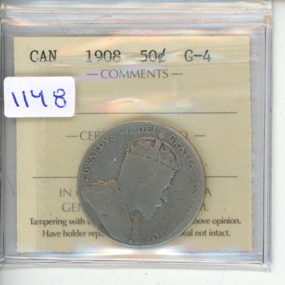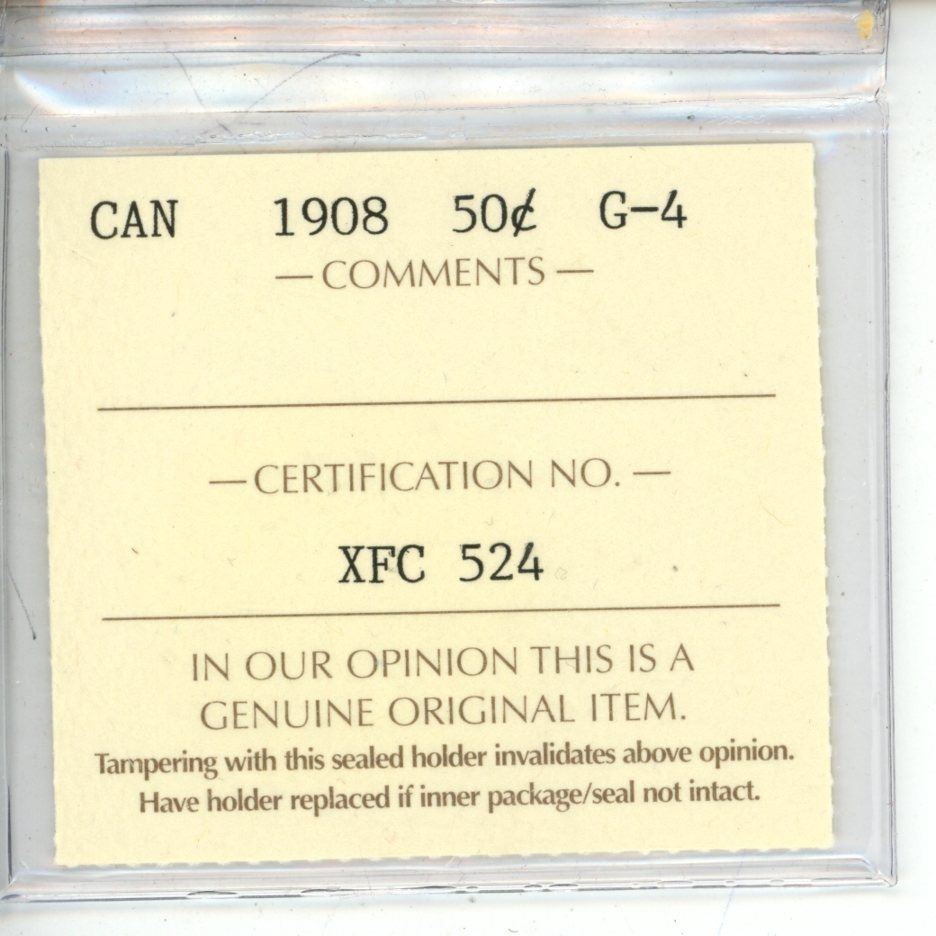 1908 ICCS Graded - Canadian Fifty Cent - G4