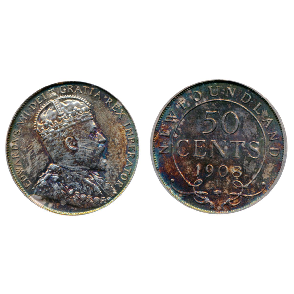 1908. ICG graded Mint State-64. Medium heavy, multi-hued toning.