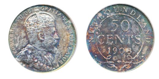 1908. ICG graded Mint State-64. Medium heavy multi- hued toning.