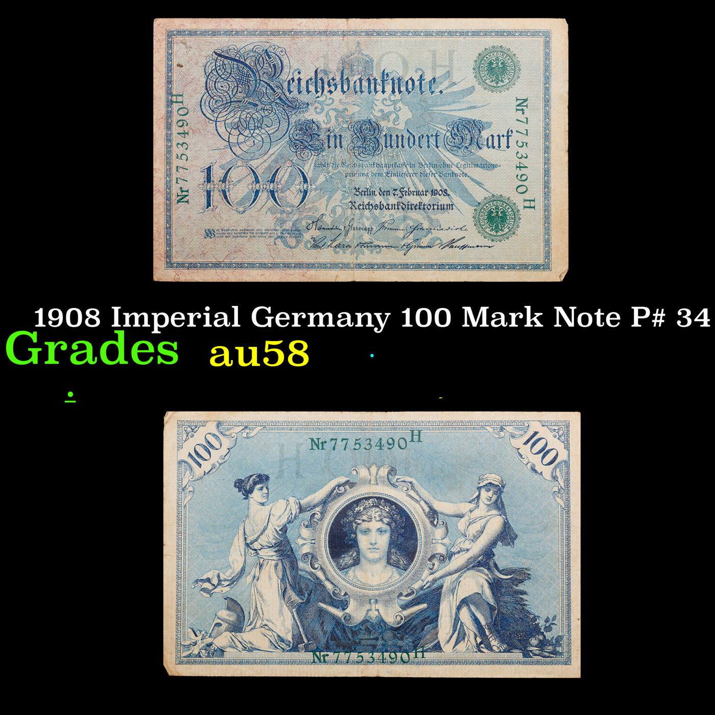 1908 Imperial Germany 100 Mark Note P# 34 Grades Choice AU/BU Slider.