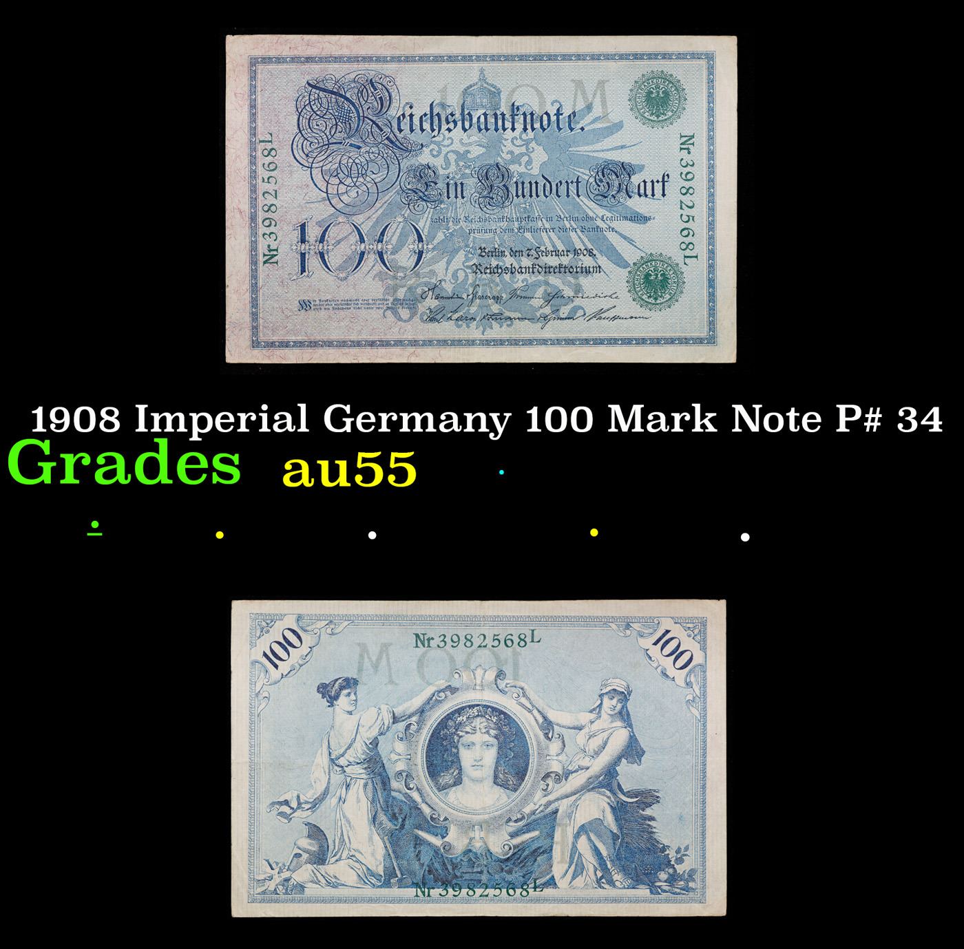 1908 Imperial Germany 100 Mark Note P# 34 Grades Choice AU.