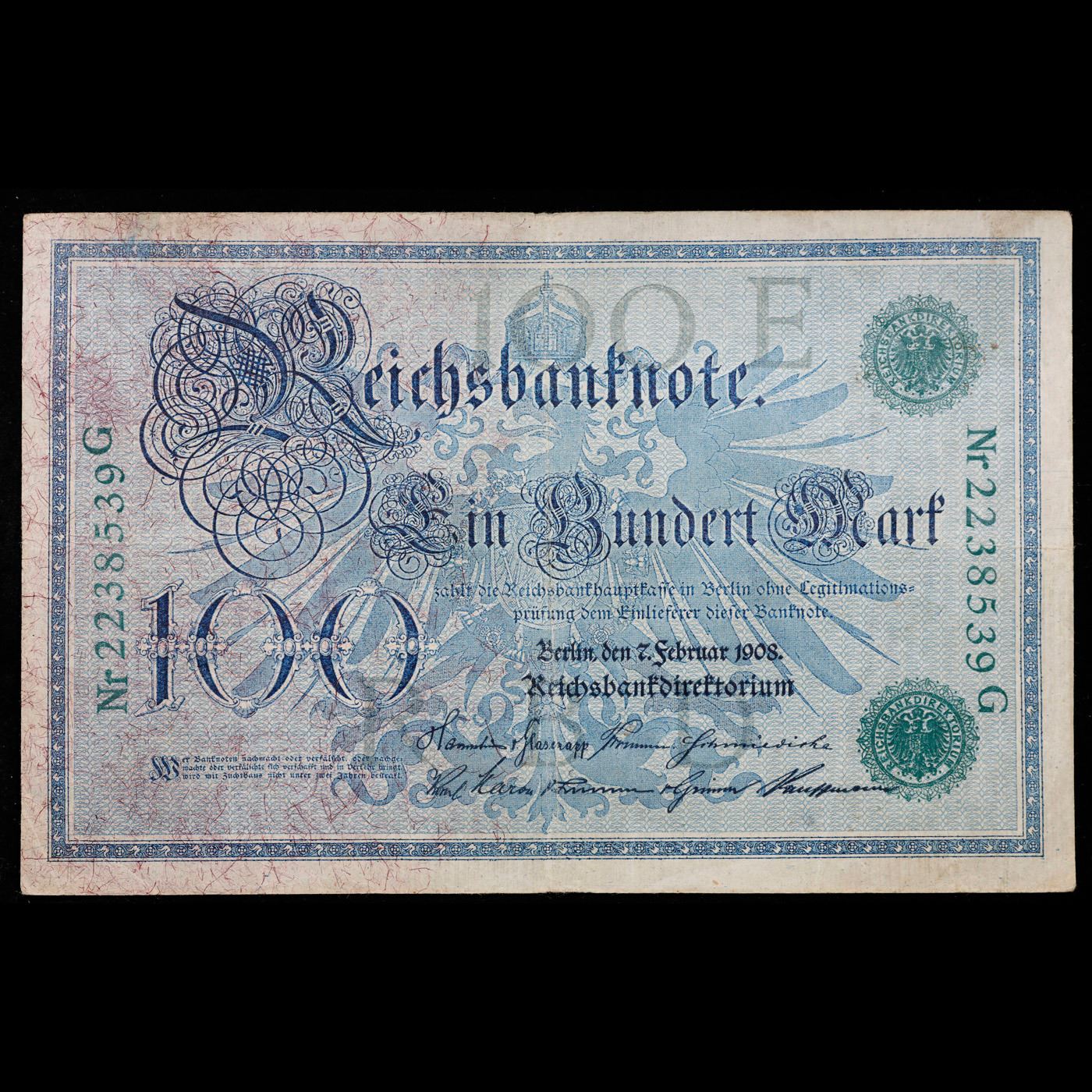1908 Imperial Germany 100 Mark Note P# 34 Grades Choice AU.