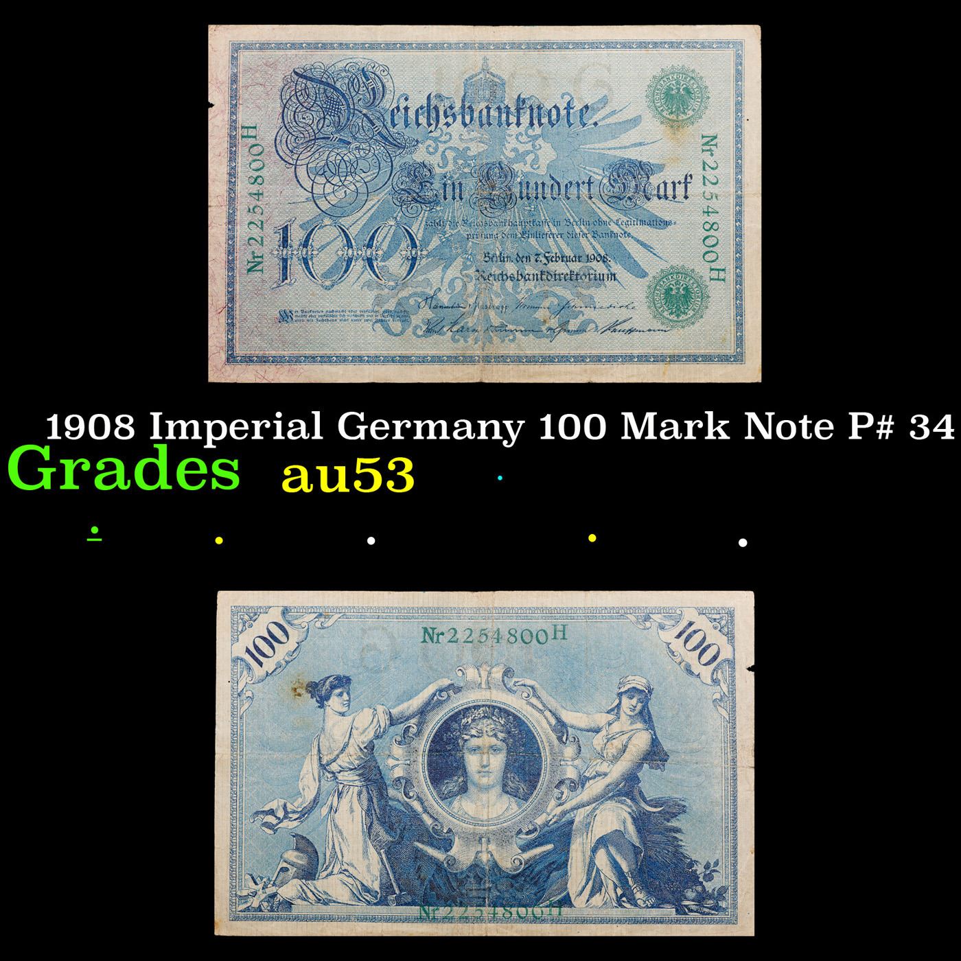 1908 Imperial Germany 100 Mark Note P# 34 Grades Select AU.
