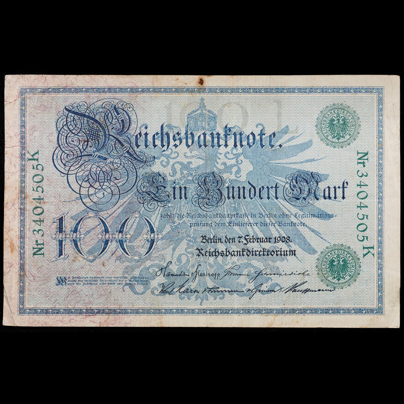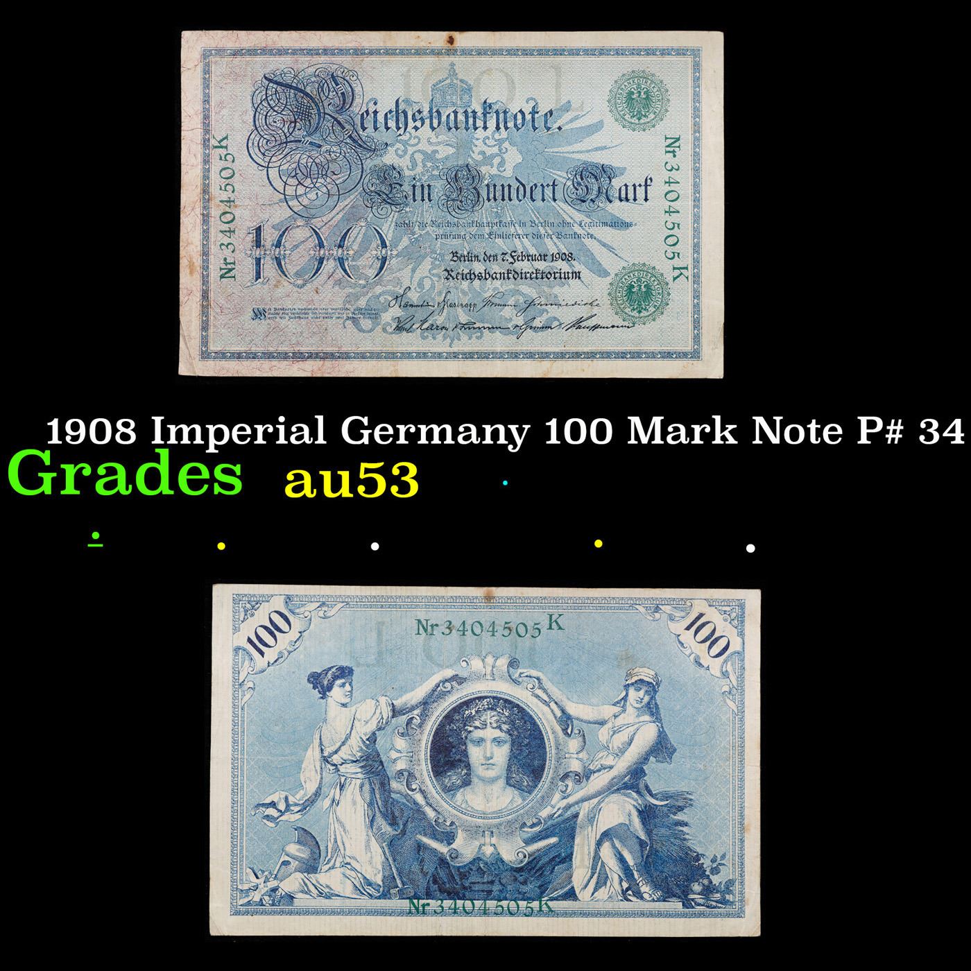 1908 Imperial Germany 100 Mark Note P# 34 Grades Select AU.