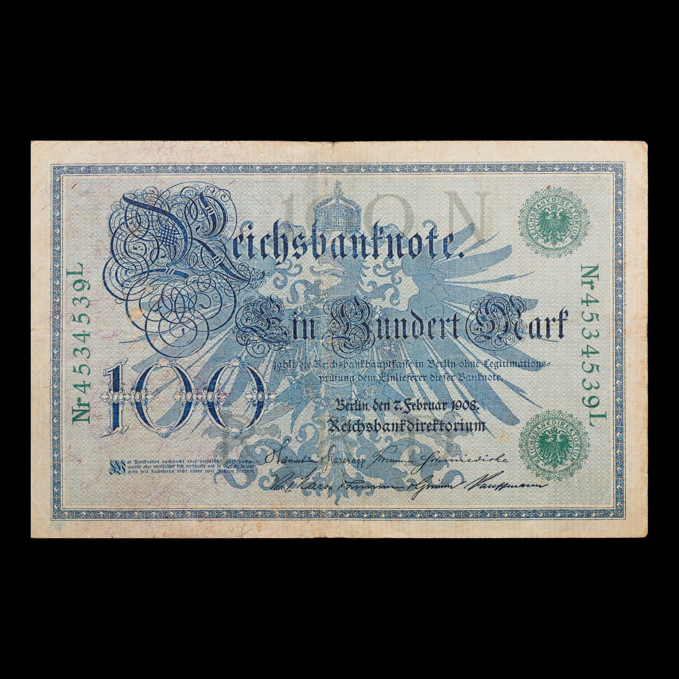 1908 Imperial Germany 100 Mark Note P# 34 Grades vf+.