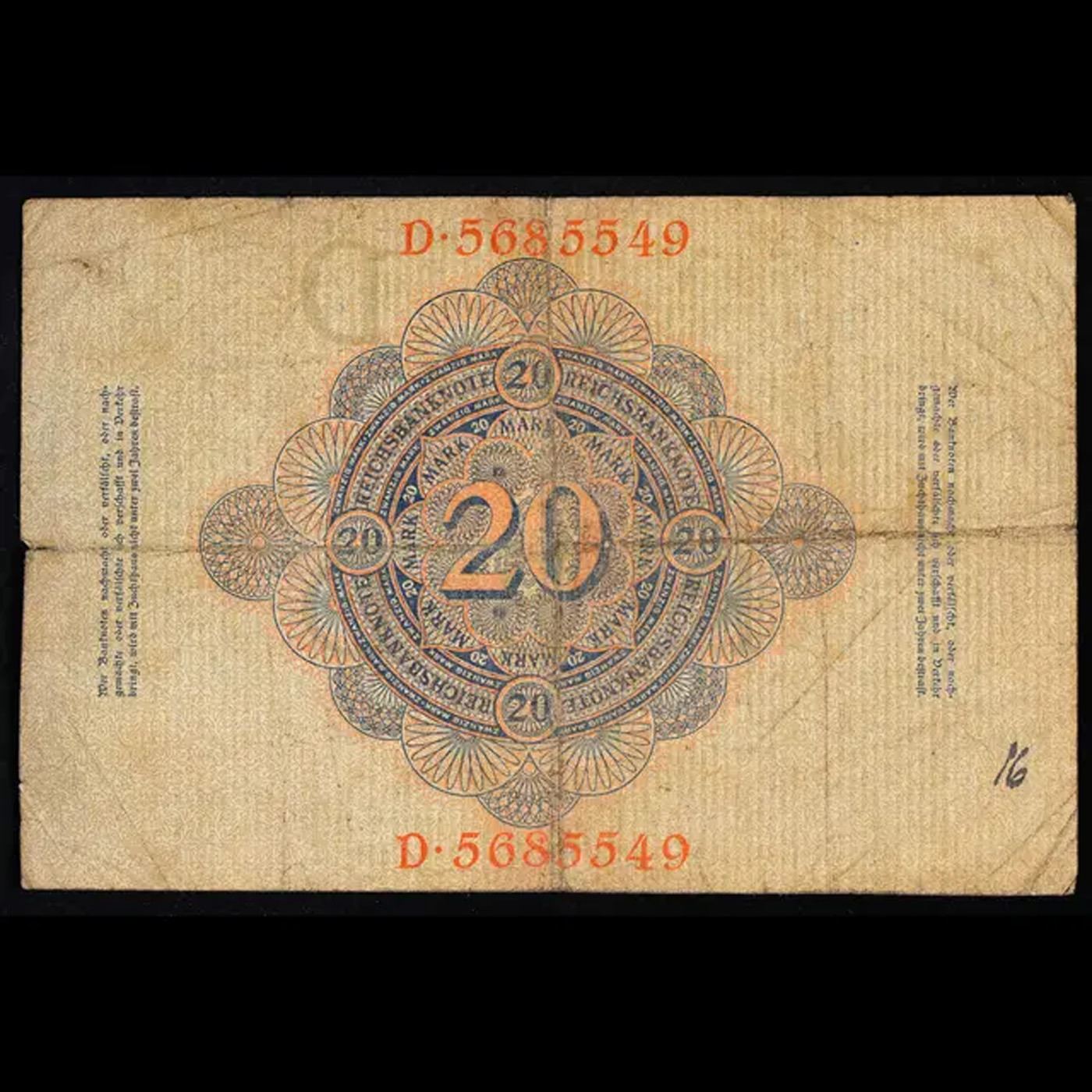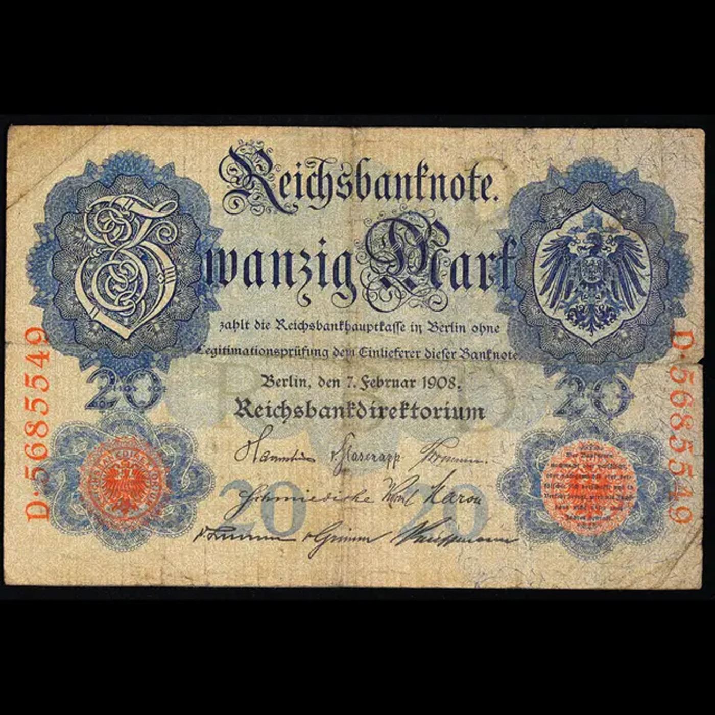 1908 Imperial Germany 20 Mark Note P# 31 Grades vf+.