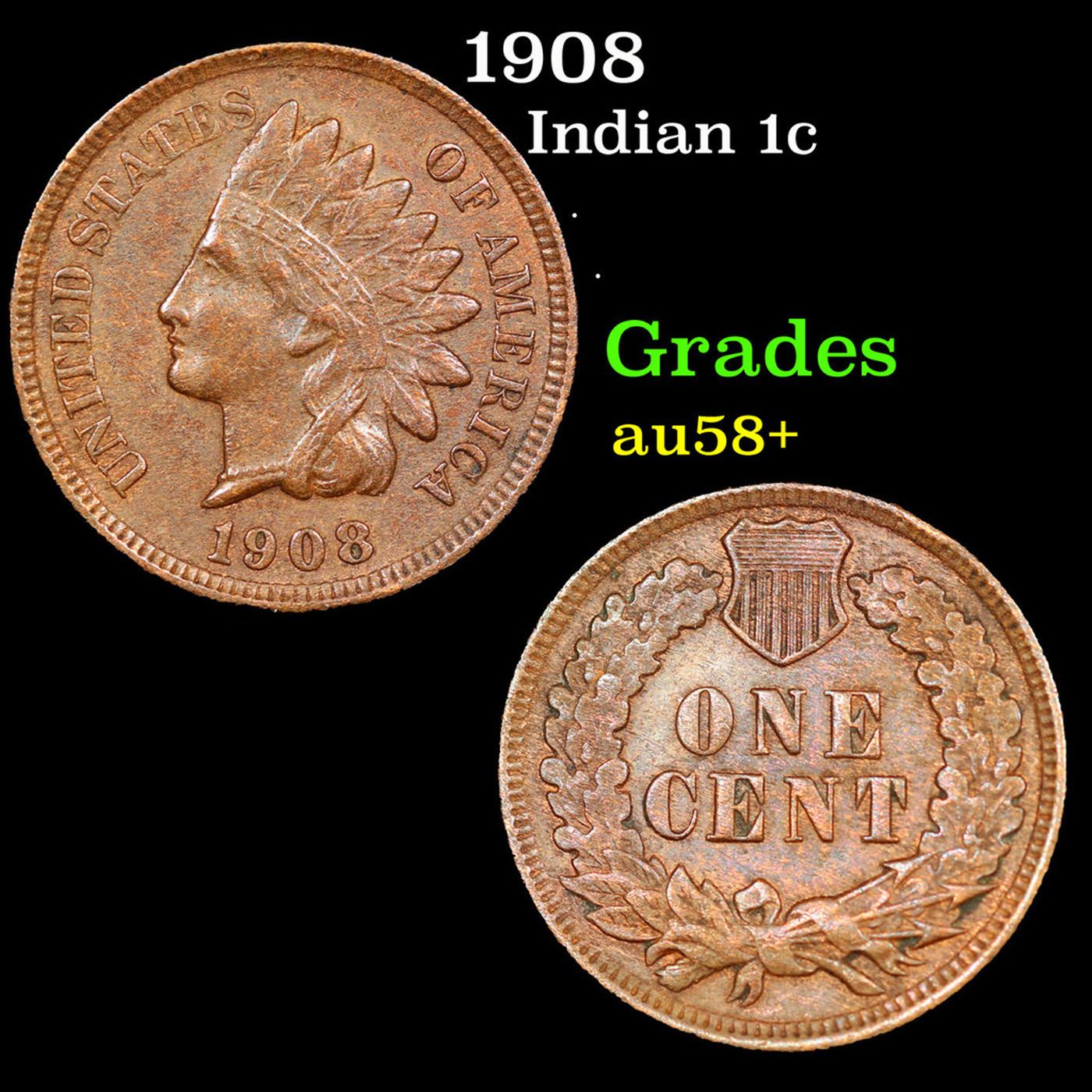 1908 Indian Cent 1c Grades Choice AU/BU Slider+.