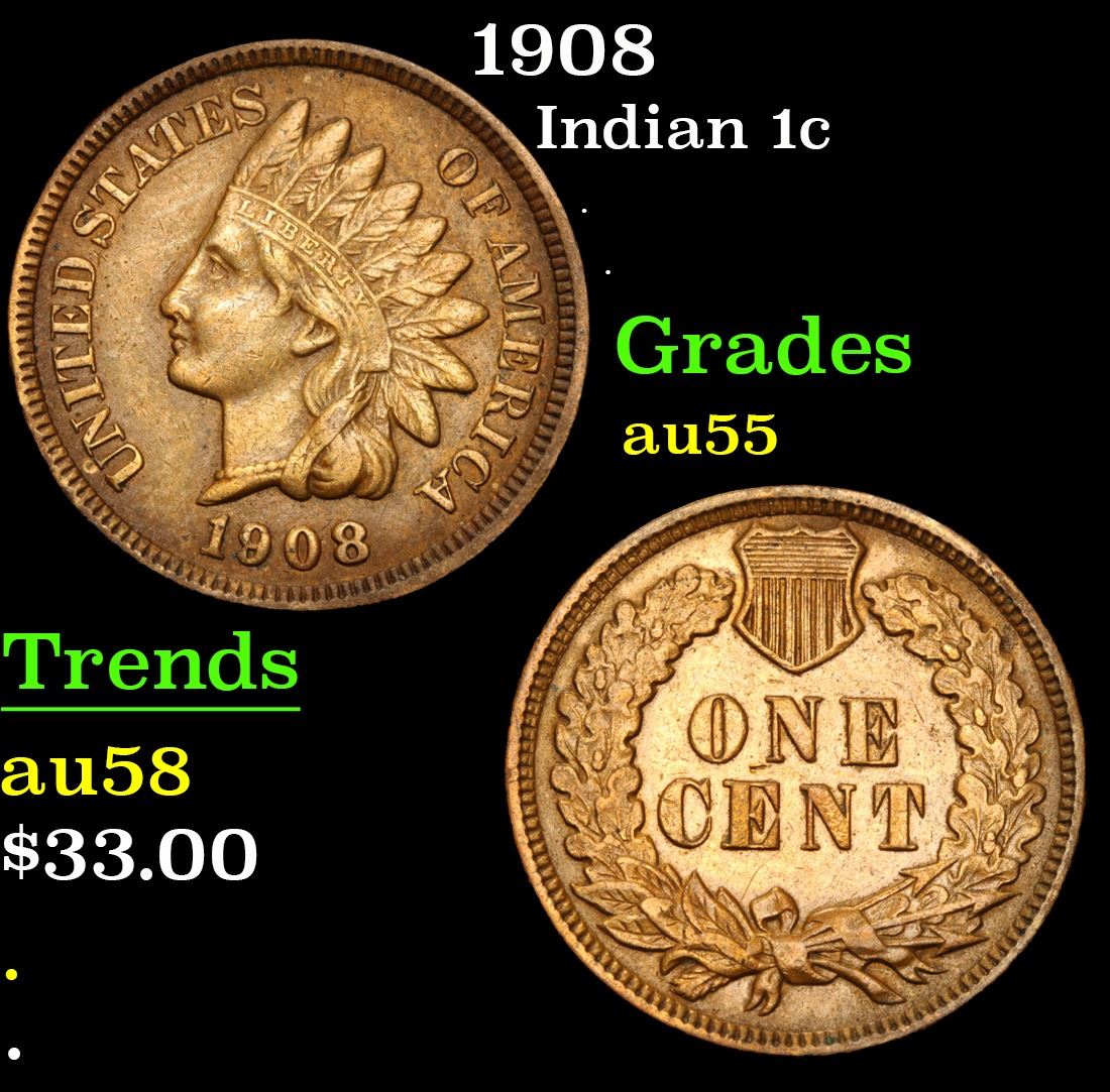 1908 . . Indian Cent 1c Grades Choice AU.