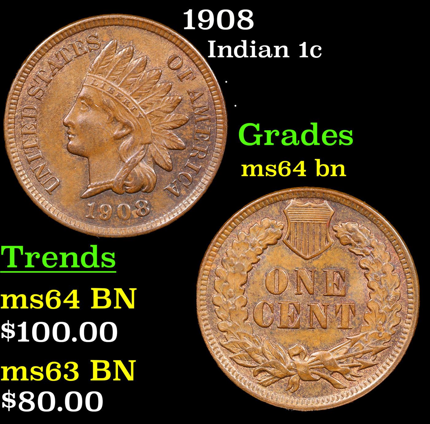 1908 Indian Cent 1c Grades Choice Unc BN.