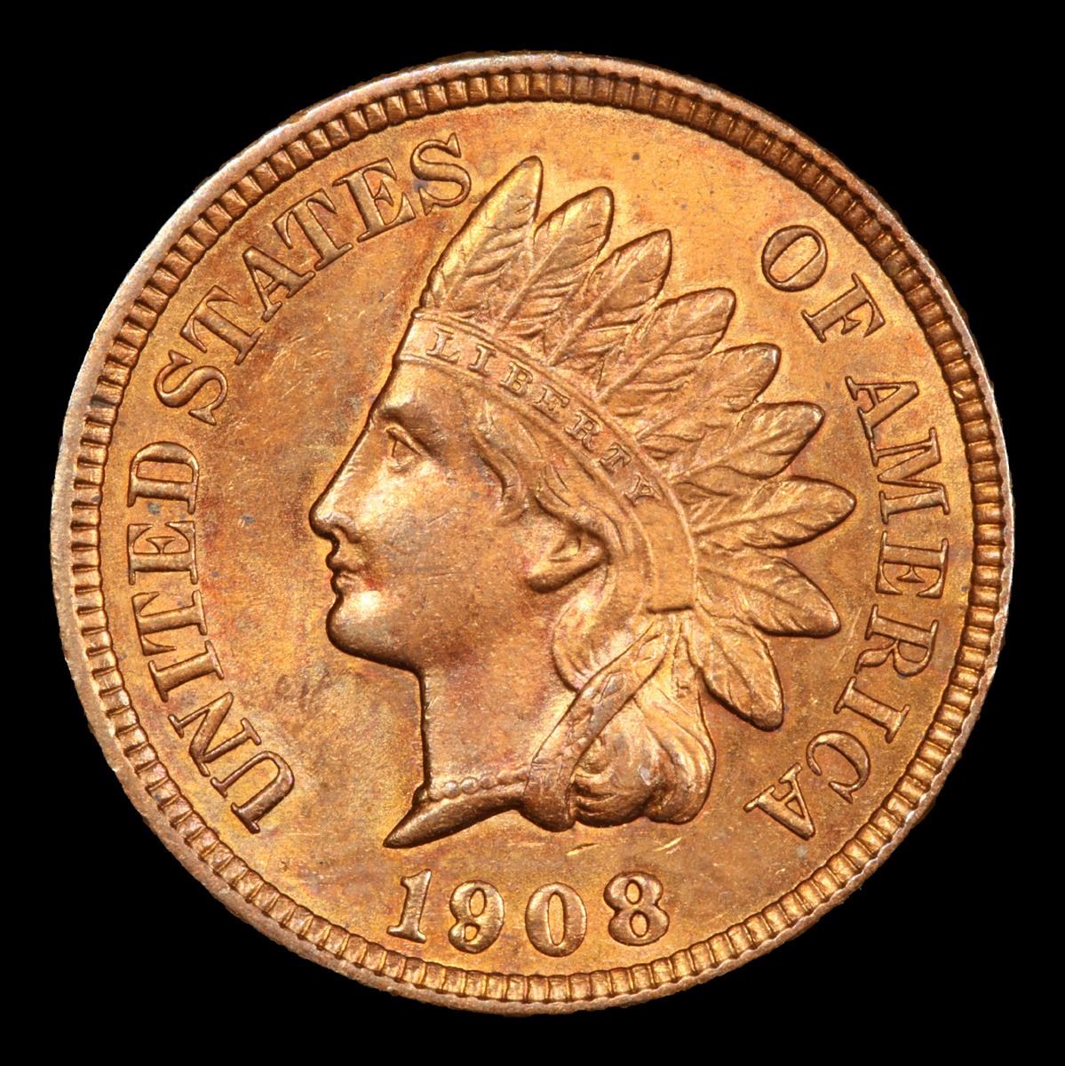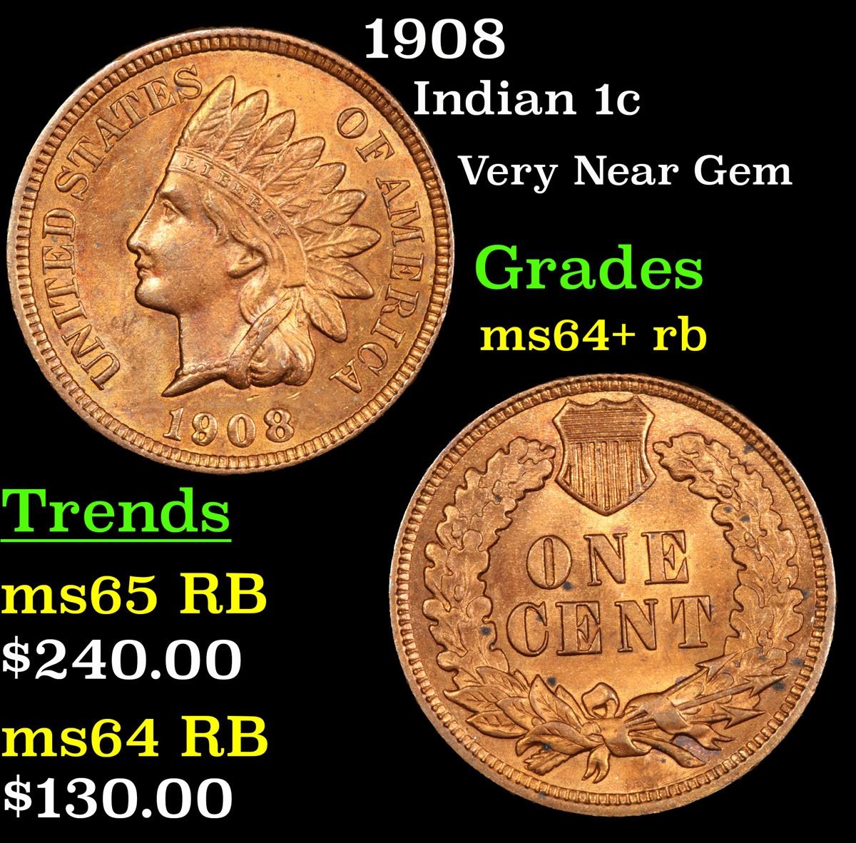 1908 . Very Near Gem Indian Cent 1c Grades Choice+ Unc RB.