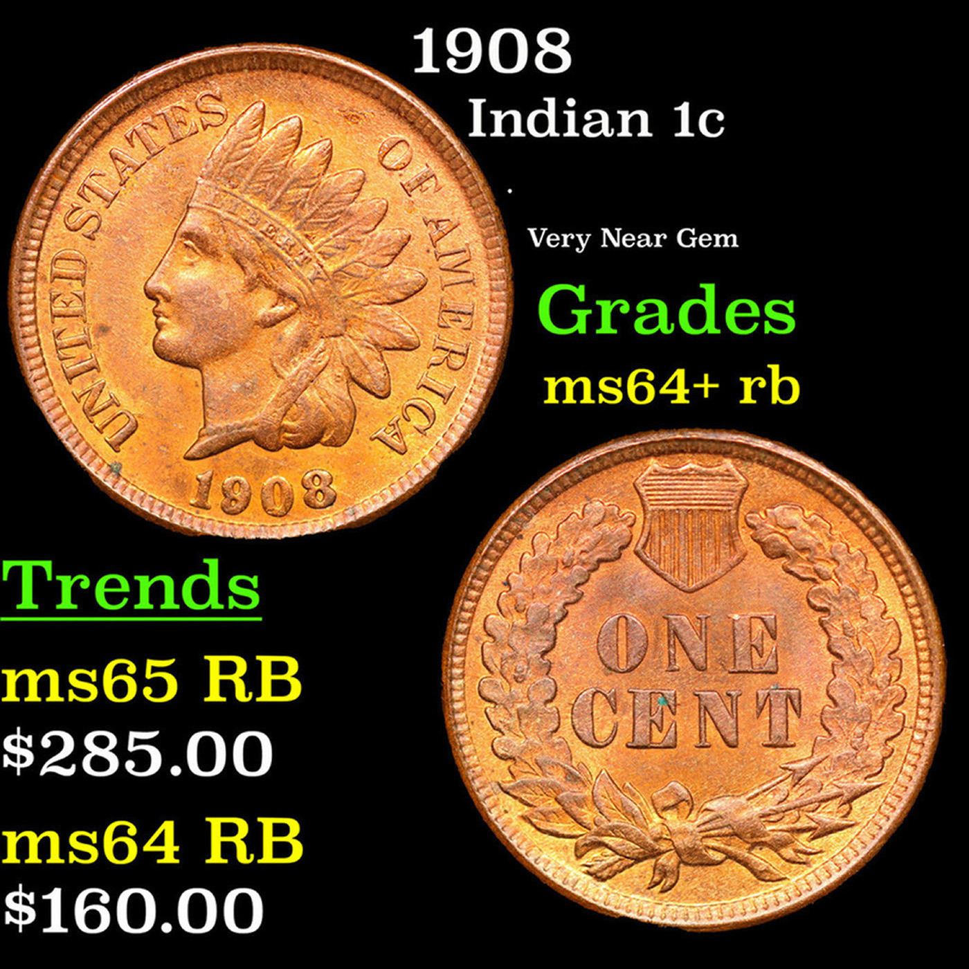 1908 Indian Cent 1c Grades Choice+ Unc RB.