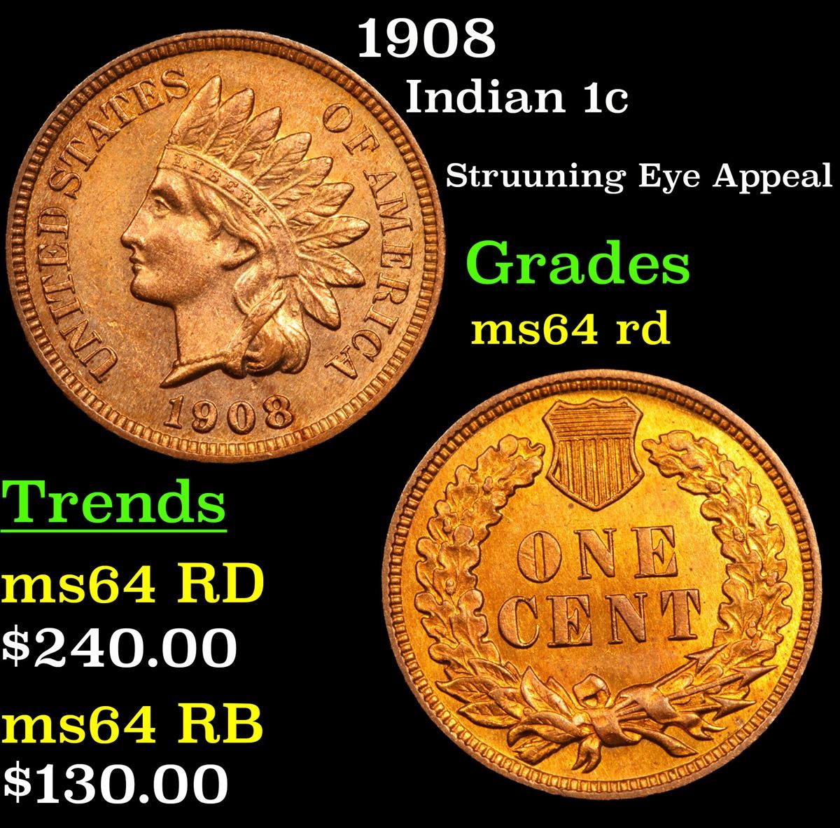 1908 Indian Cent 1c Grades Choice Unc RD.