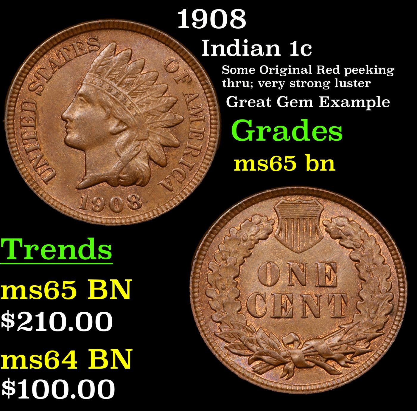 1908 Indian Cent 1c Grades GEM Unc BN.