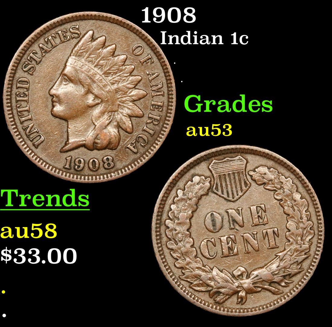 1908 . . Indian Cent 1c Grades Select AU.