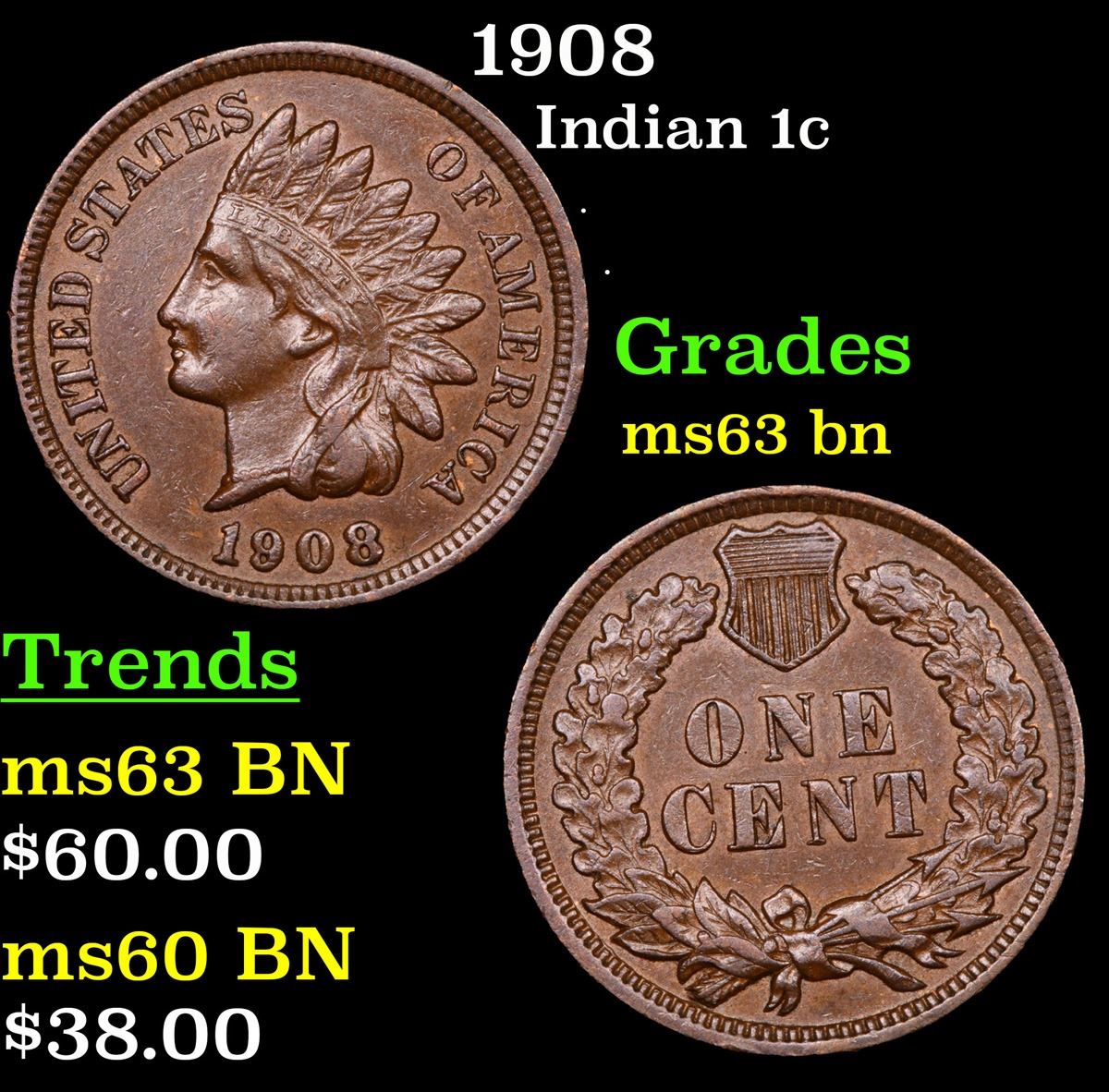 1908 . . Indian Cent 1c Grades Select Unc BN.