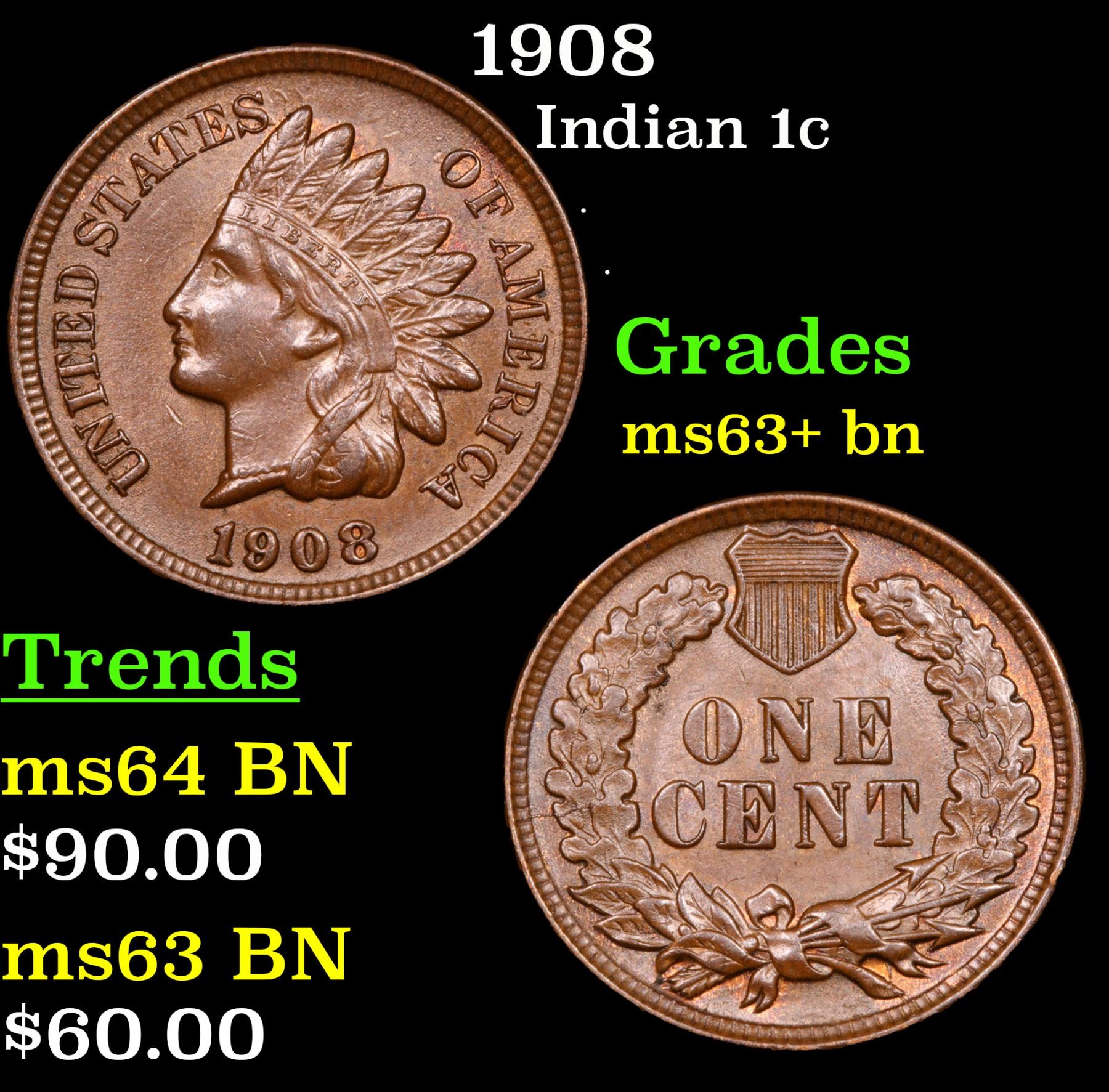 1908 . . Indian Cent 1c Grades Select+ Unc BN.