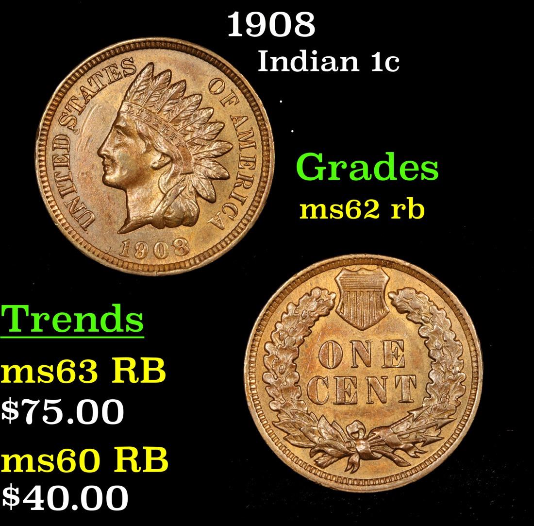 1908 . . Indian Cent 1c Grades Select Unc RB.