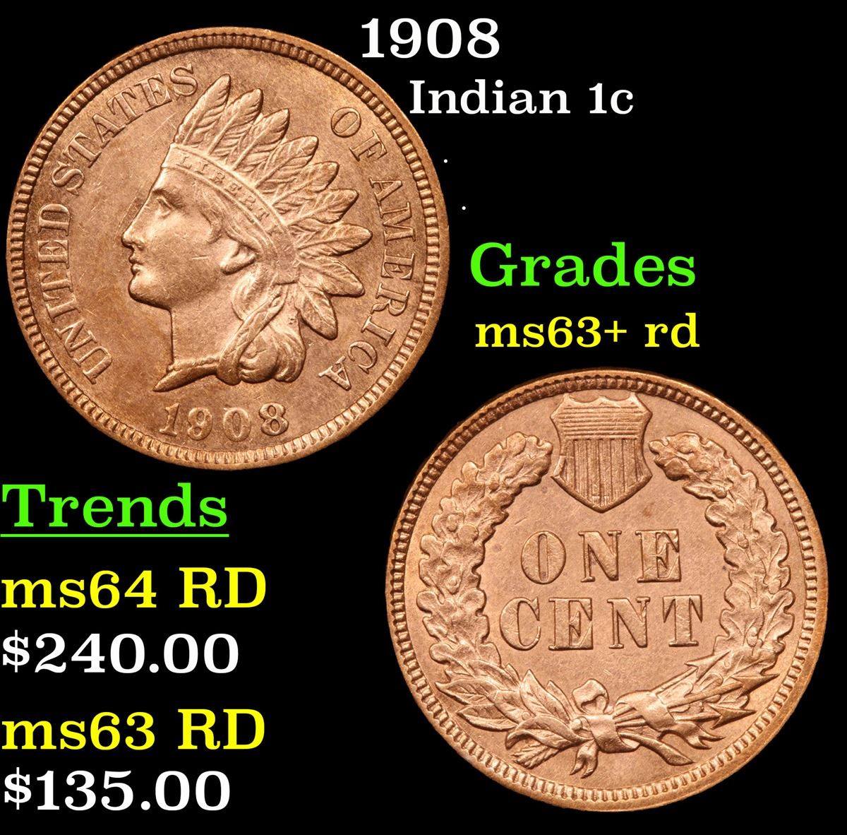 1908 . . Indian Cent 1c Grades Select+ Unc RD.