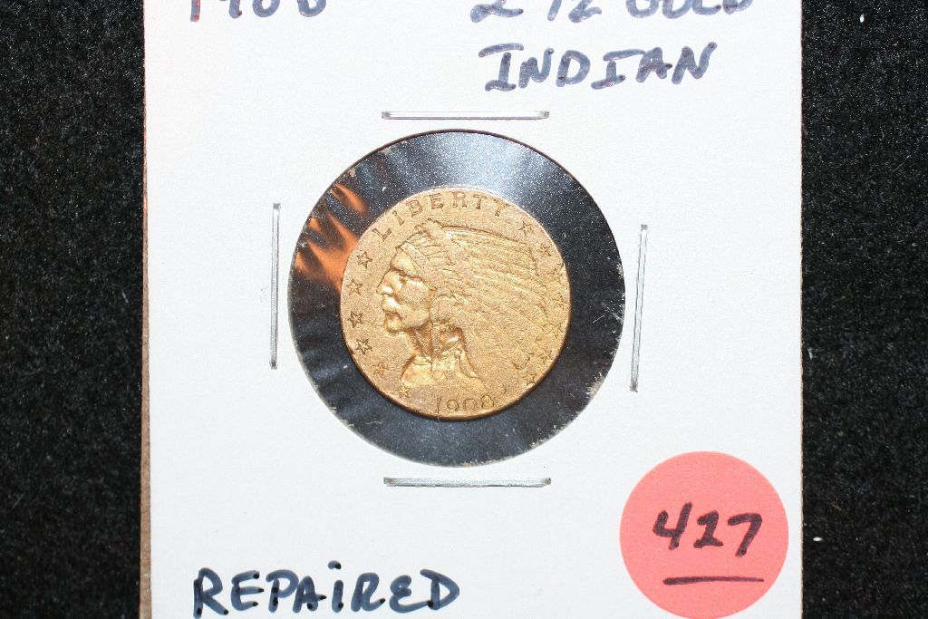 1908 Indian Chief $2 1/2 Gold Coin, Repaired
