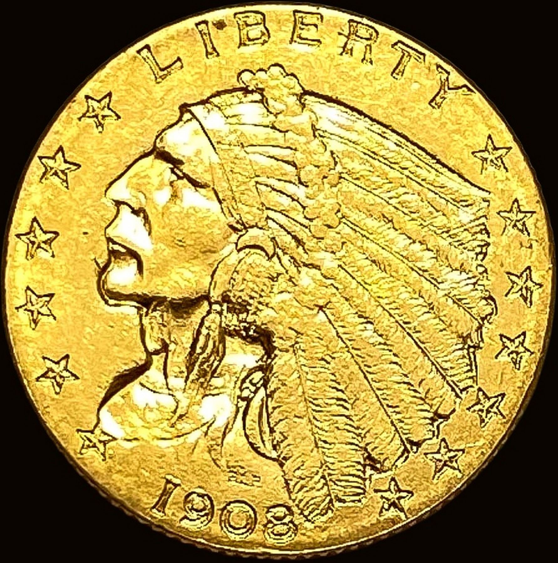 1908 Indian Head $2.5 Gold Quarter Eagle CLOSELY UNCIRCULATED