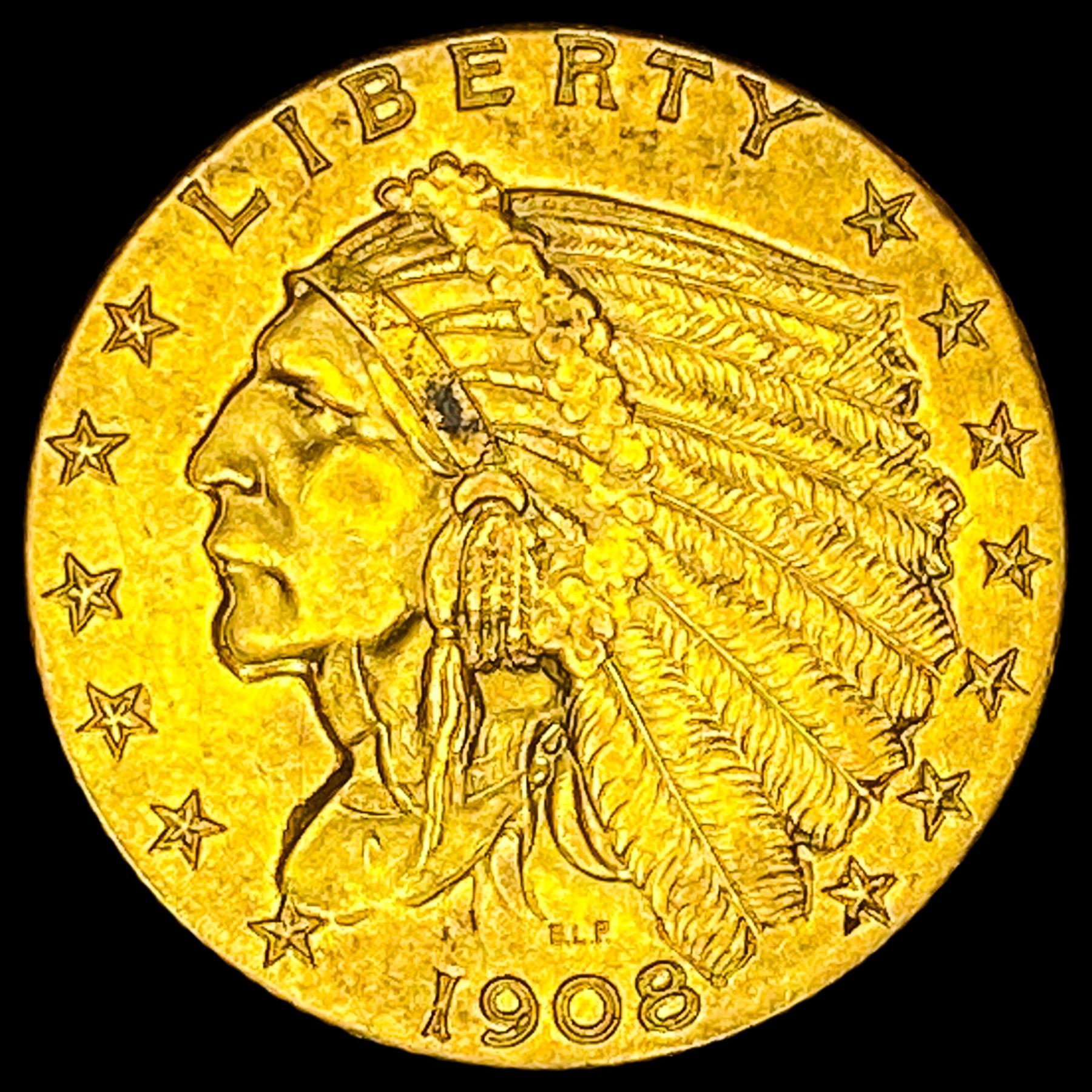 1908 Indian Head $2.5 Gold Quarter Eagle CLOSELY UNCIRCULATED